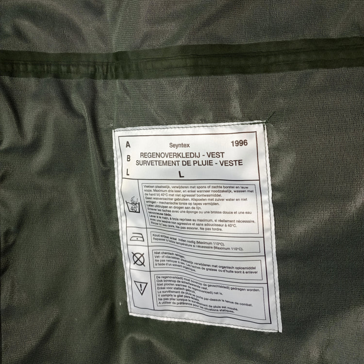 These jackets are genuine unissued Belgian army wet weather jackets. Similar to Gore-Tex, these are made by Seyntex.
