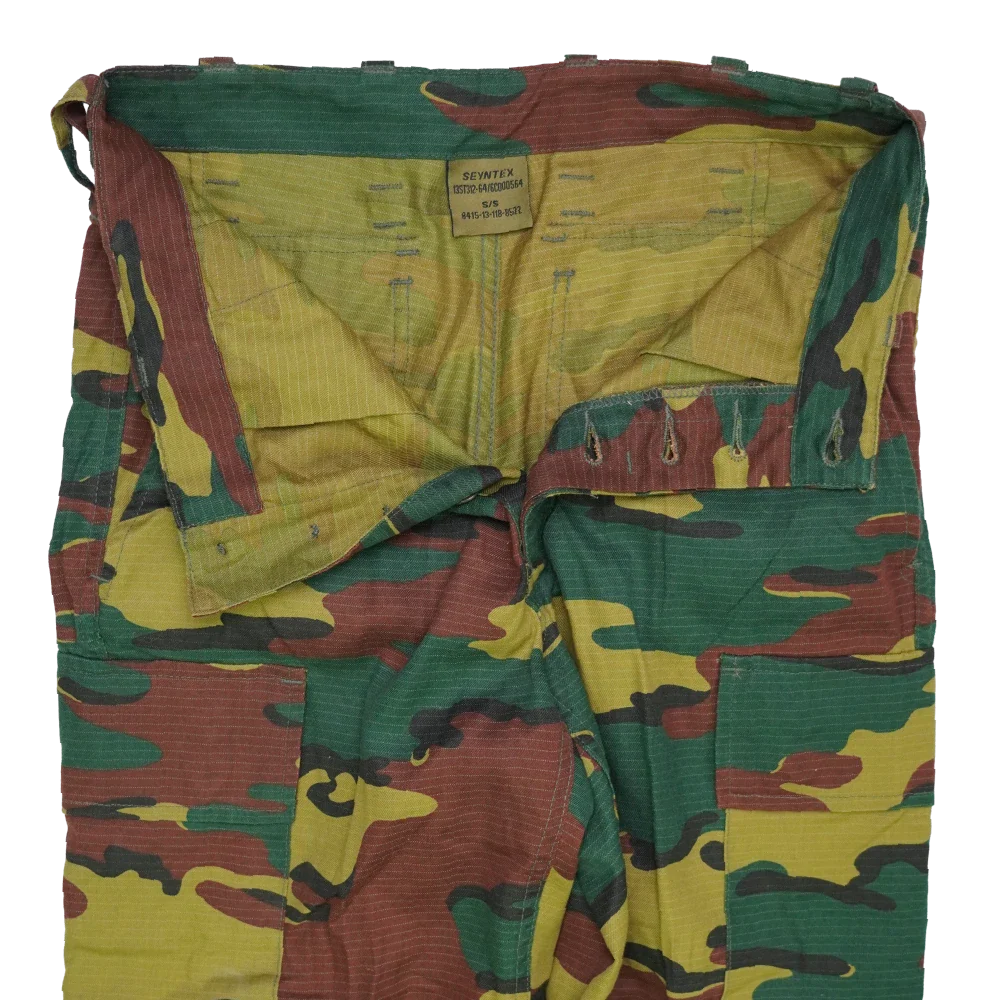 Belgian Jigsaw camouflage ripstop trousers in Small Short-Regular sizing. Made from ripstop fabric with a reinforced weave pattern designed to limit tearing.
