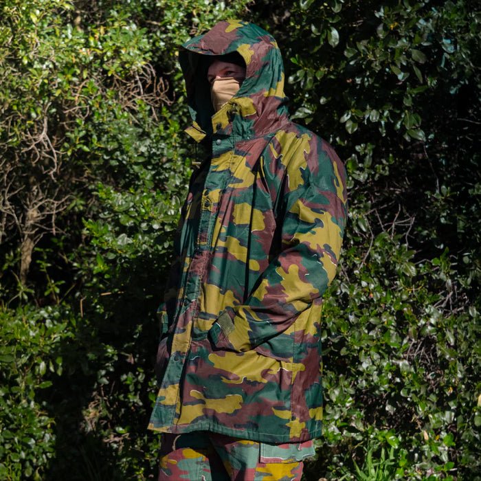 These jackets are genuine Belgian Army wet weather jackets. Similar to Gore-Tex, these are made by Seyntex. While sometimes we have unissued stock of these jackets (most of the time in larger sizes only), we now have these used ones, but these have been used too hard!