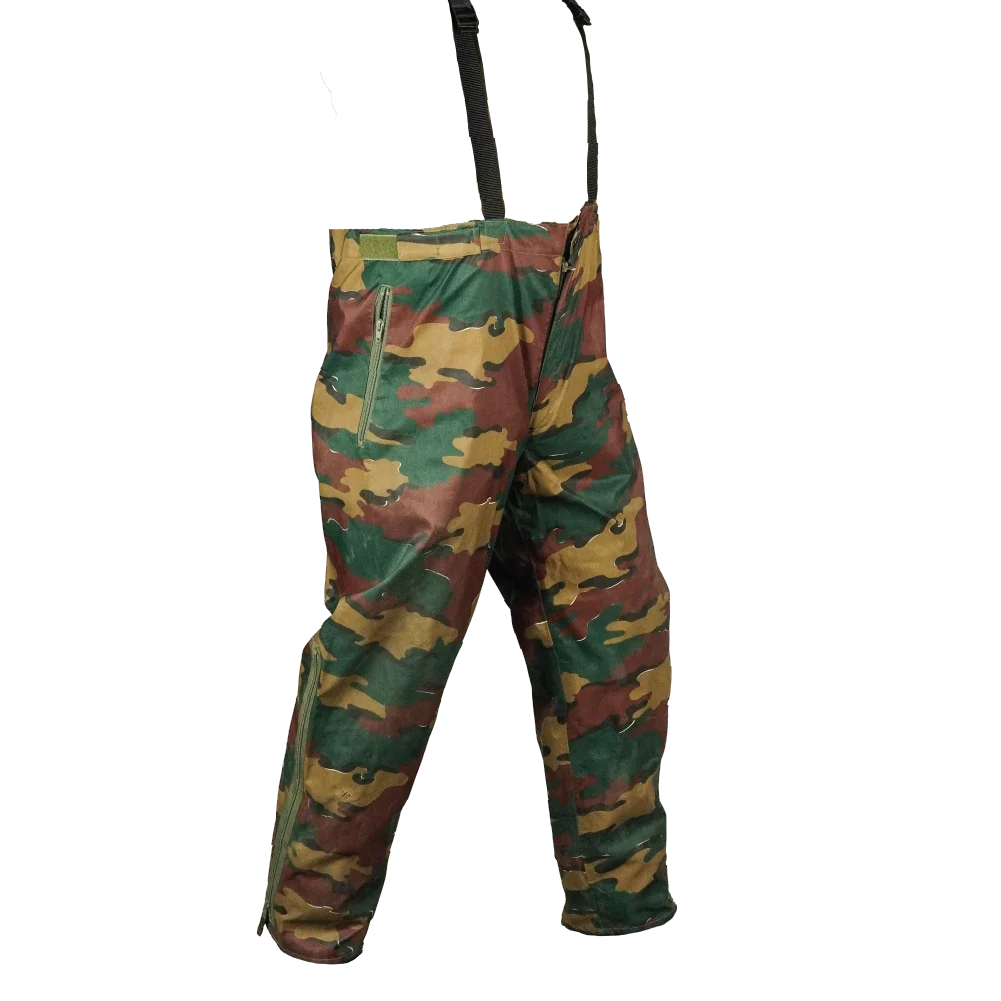 The trousers are finished in the Belgian jigsaw camouflage pattern and are intended to be worn over other clothing.