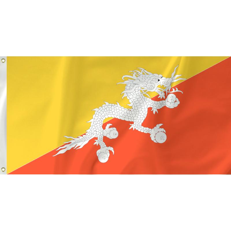 Officially adopted in 1969 the Bhutanese flag has undergone subtle changes in the years prior. The dragon in the centre of the flag named 'Druk' is a national symbol going back for a thousand years - locals call the country Druk after the dragon.