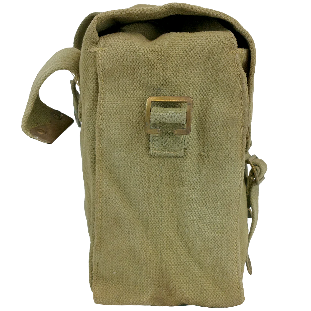 These haversacks were the pack mule of both British and Commonwealth forces during World War 2. The 1937 pattern served all over the world and continued to persist with reserve units well into the Vietnam War (and in some cases after). Some have Belgian postwar markings, many have faded.