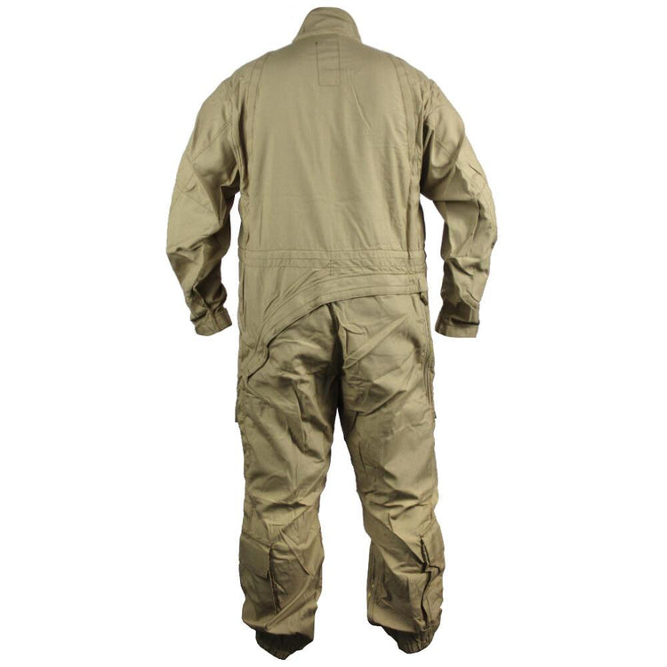 These beige overalls are issued to British army pilots. Filled with features and details that makes them both comfortable and handy. The resistant material is the perfect protection for pilots working conditions. Thigh mounted ID windows allow pilots to keep identification visible at all times. Cargo pockets provide space for extra gear and equipment. In "emergency situations", a back flap can be opened for the user's relief.