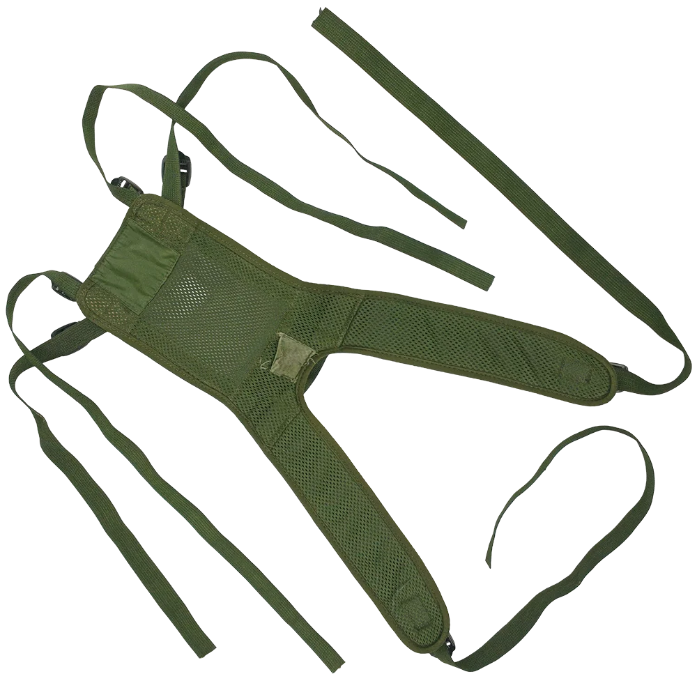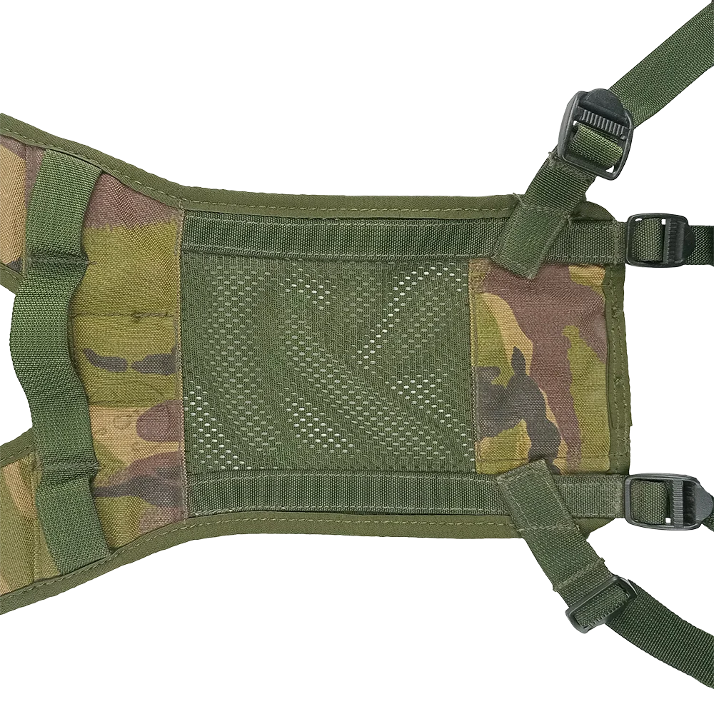Here we have a genuine issue British army yoke, finished in DPM camouflage. This yoke is designed to attach to the belt of the classic PLCE setup, with long, adjustable strapping to help distribute weight. Lightly padded shoulders and a mesh back panel provide comfort to the user. If you've got a belt based system (especially PLCE set up) this is the one for you!