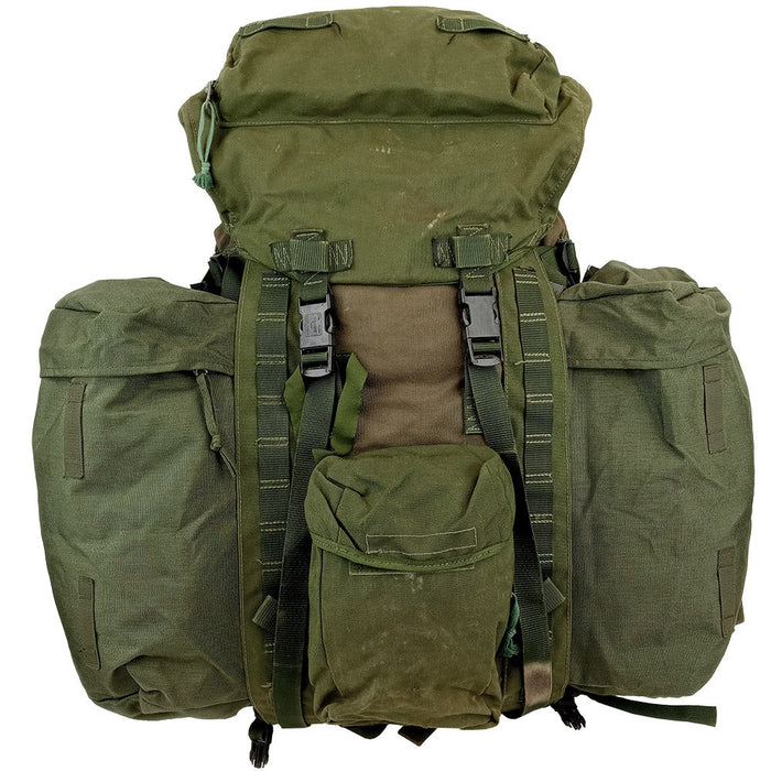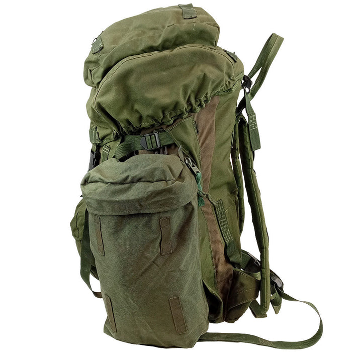 The British army infantry used these PLCE (Personal Load Carrying Equipment) packs, or bergans, as their main source for carrying equipment. Although these packs have seen their fair share of use and my be a bit faded or lining a bit scuffed, they still function fantastically. Tough and sturdy are understatements when referring to this bit of gear.