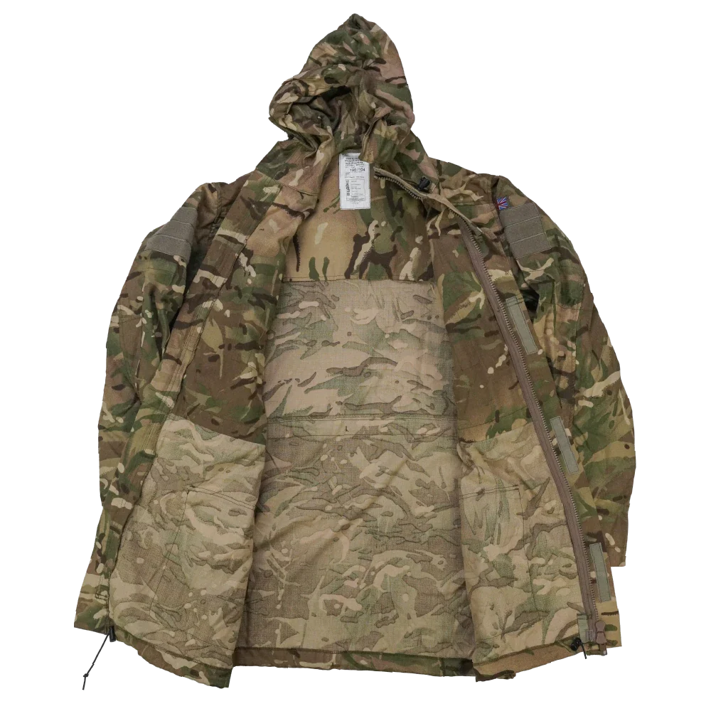 British MTP FR windproof jacket in used, very good condition. This jacket features an MTP camouflage pattern and flame-resistant fabric, with a windproof outer designed in a full jacket cut.