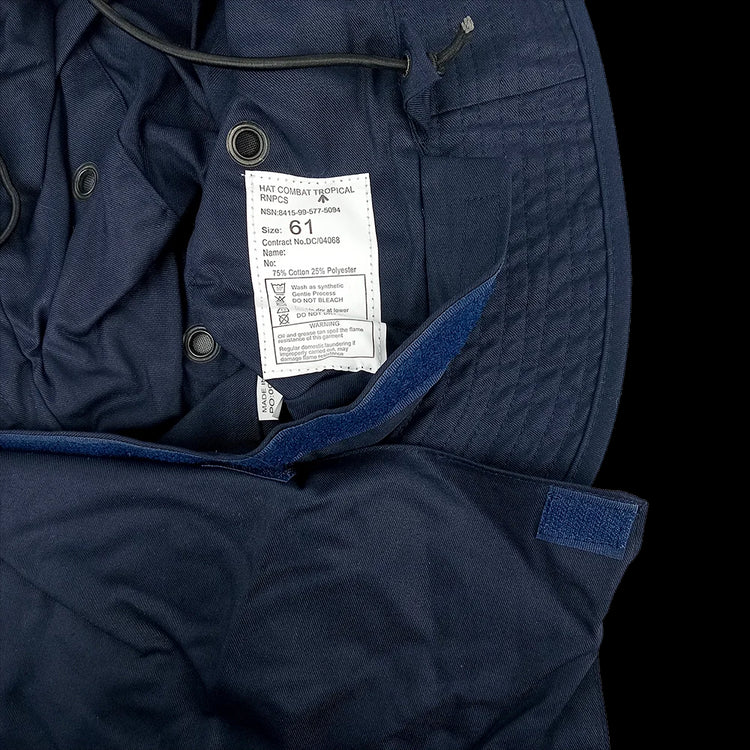 Another piece to the British Navy uniform, a nice hat to keep the sun off your noggin. And with deploy-able mullet (neck flap), it can keep sun off your neck too!