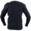 Navy-navy blue, v-neck wool blend jersey, say no more! These ''Utility'' versions do not have the wide ribbing weave like the commando style, but with a nylon blend, they are still nice and form conforming. The reinforced areas and epaulettes are really the only hint that this cosy jumper wasn't originally for the general public but it still blends in to civilian life just fine.