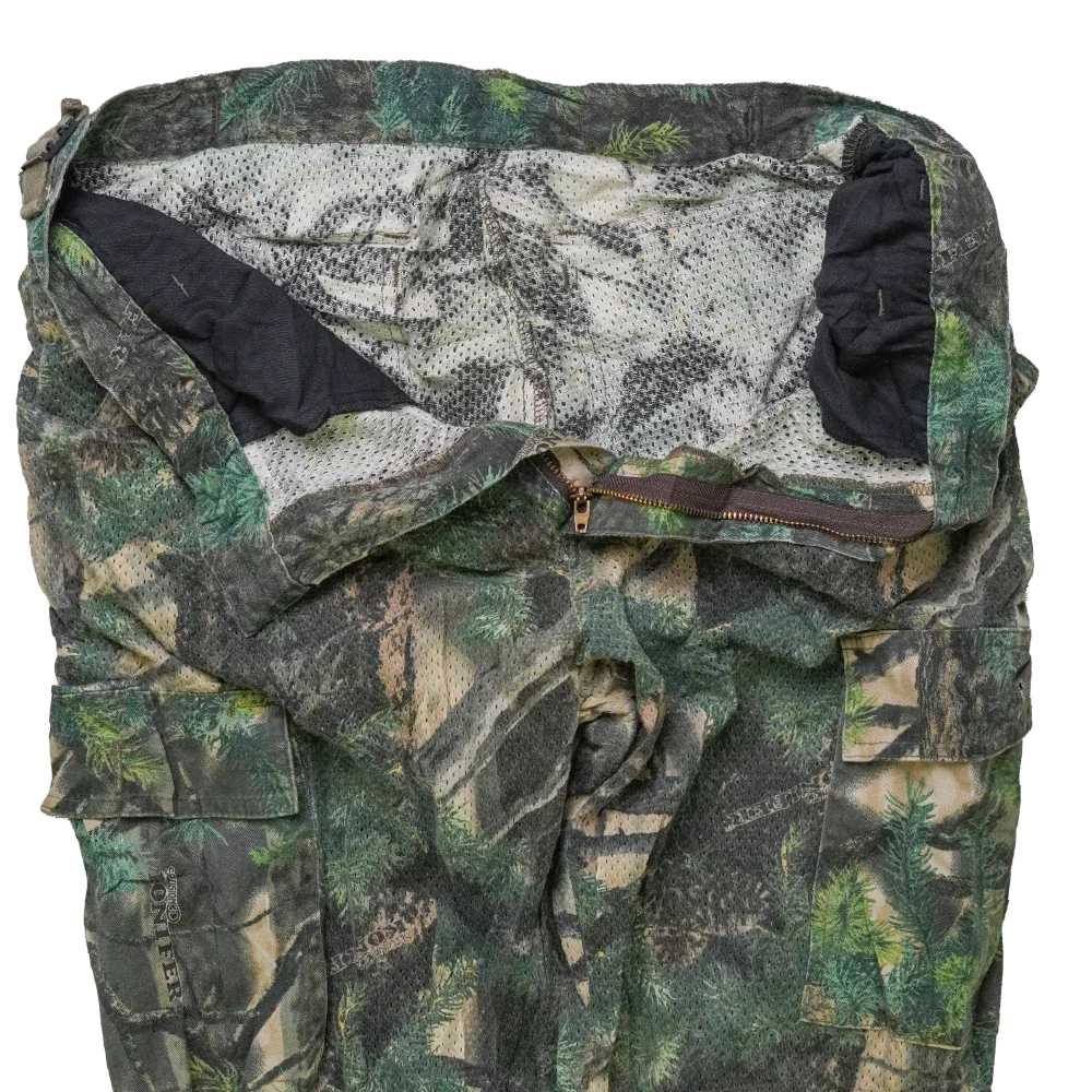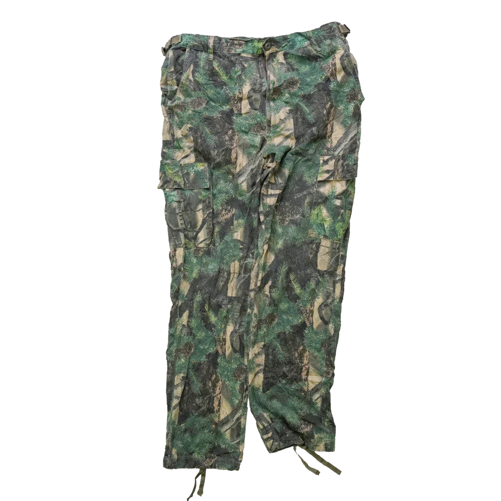 Cabelas Konifer Camo mesh trousers in Medium (79–89cm). Made in a lightweight mesh construction with a camouflage pattern.