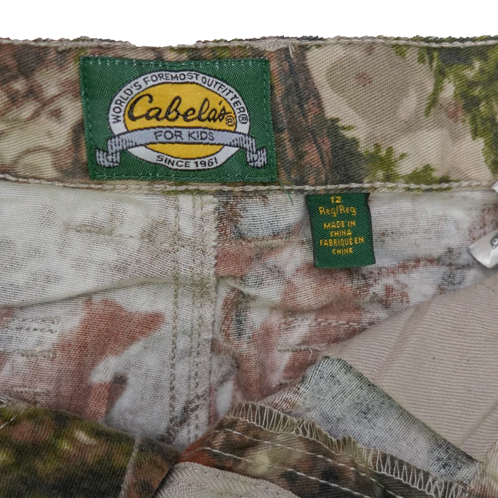 Cabelas Zonz camouflage kids trousers in Youth Size 12. Full-length trousers in a camo pattern design.