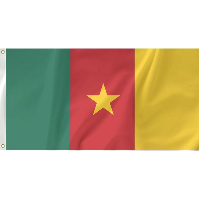 Cameroon adopted their current flag in 1975. The flag incorporates pan-African colours. The red stripe and star stands for unity, the yellow represents the sun and the green is for the southern forests of Cameroon.