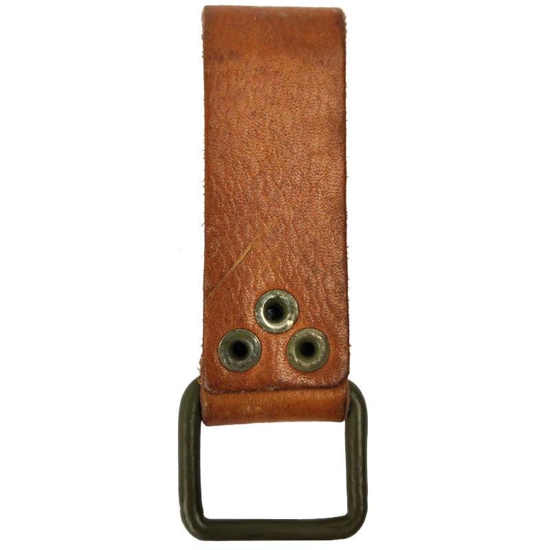 A genuine belt loop from the Czechoslovakian Army to match any potential Czech belts and suspenders you may have lying around. If you don't happen to own one, do not fret, you can slide this leather keeper over any belt less than 4cm in width. The loop is riveted together so you'll have to slide it on and off your belt. This creates a secure point of attachment to connect your suspenders to your belt.