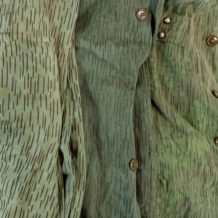 The thick cotton construction makes this parka a rugged piece to wear. Wear it as a top layer to protect yourself against the elements. Two buttoned waist pockets and a rear pocket offer storage for your tools or modern gadgets. The button-up front is covered by a storm flap which keeps the camo pattern uninterrupted while providing extra weather proofing. Even in modern times this parka makes a great casual jacket. Or make an addition to your Czech rain camo collection.