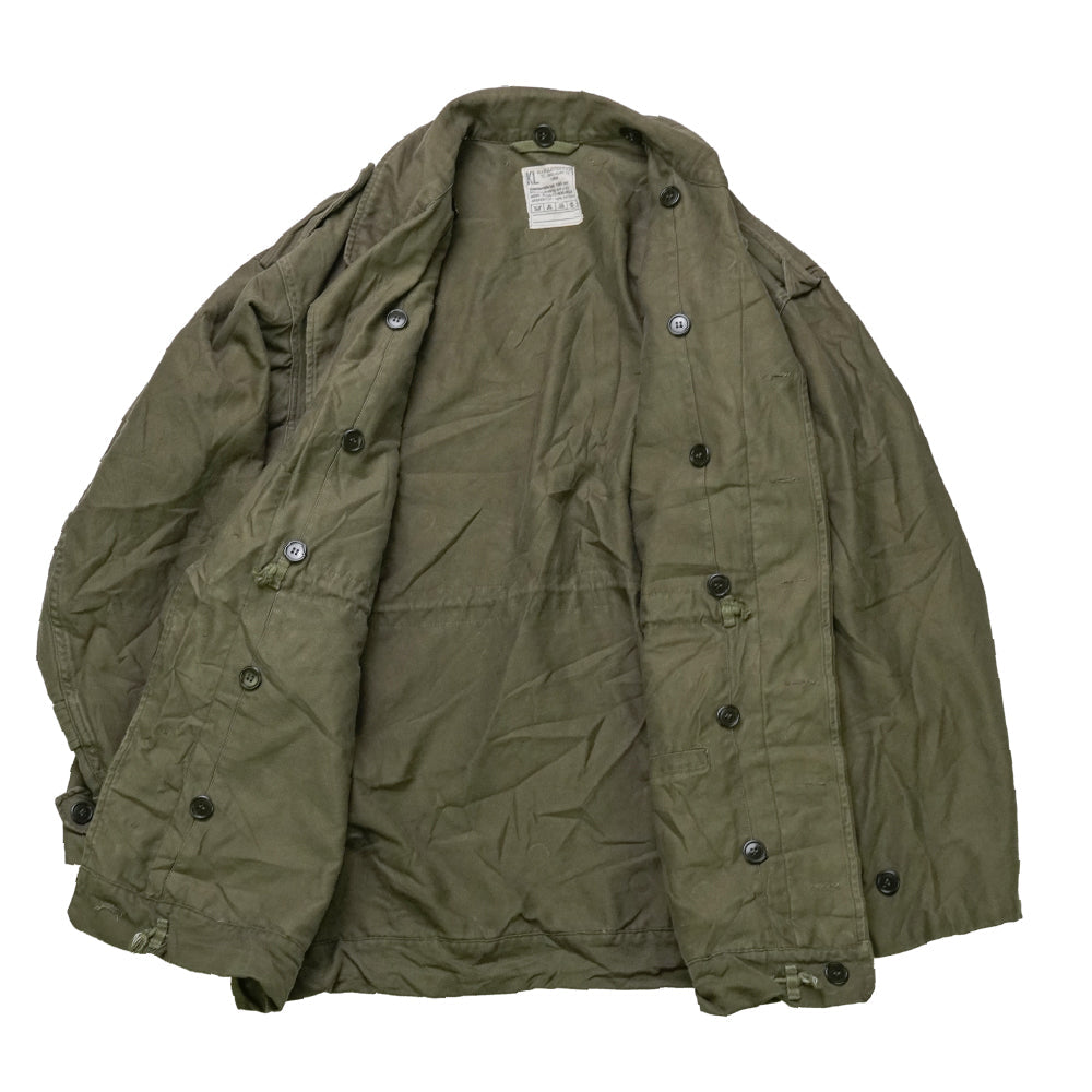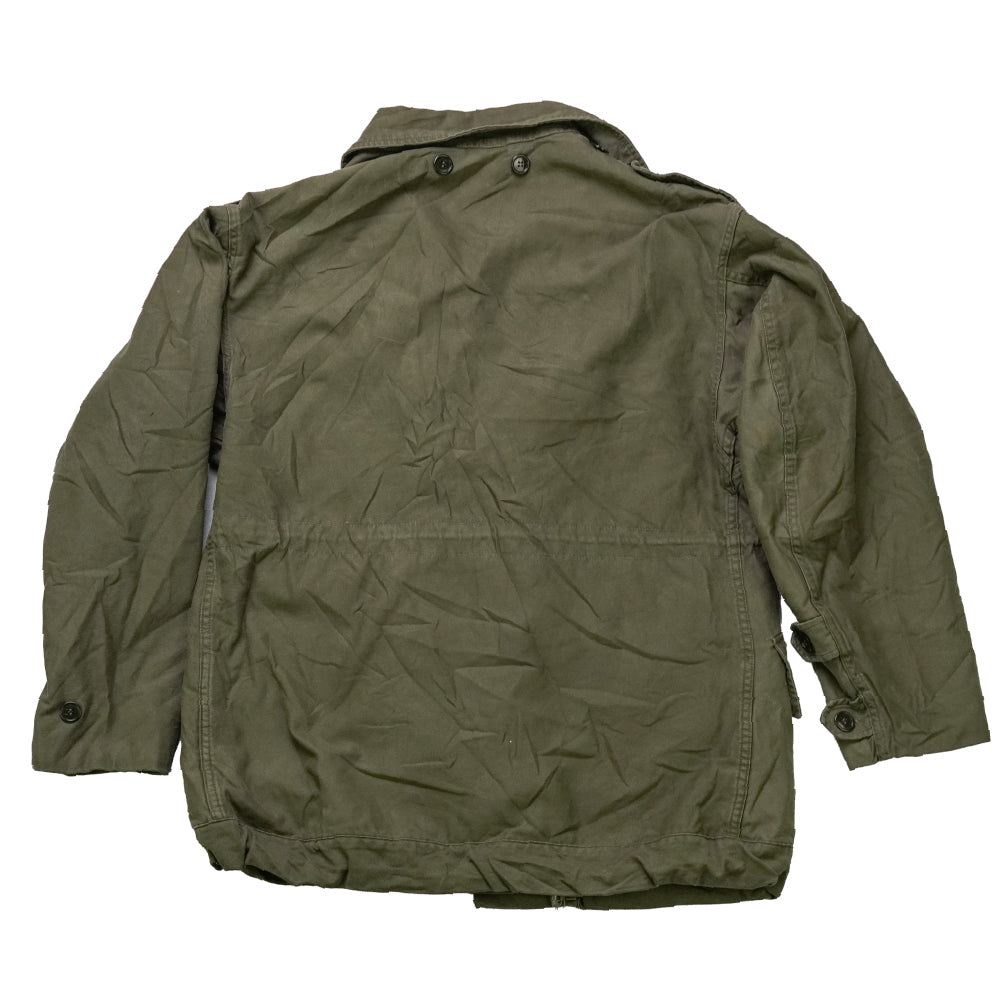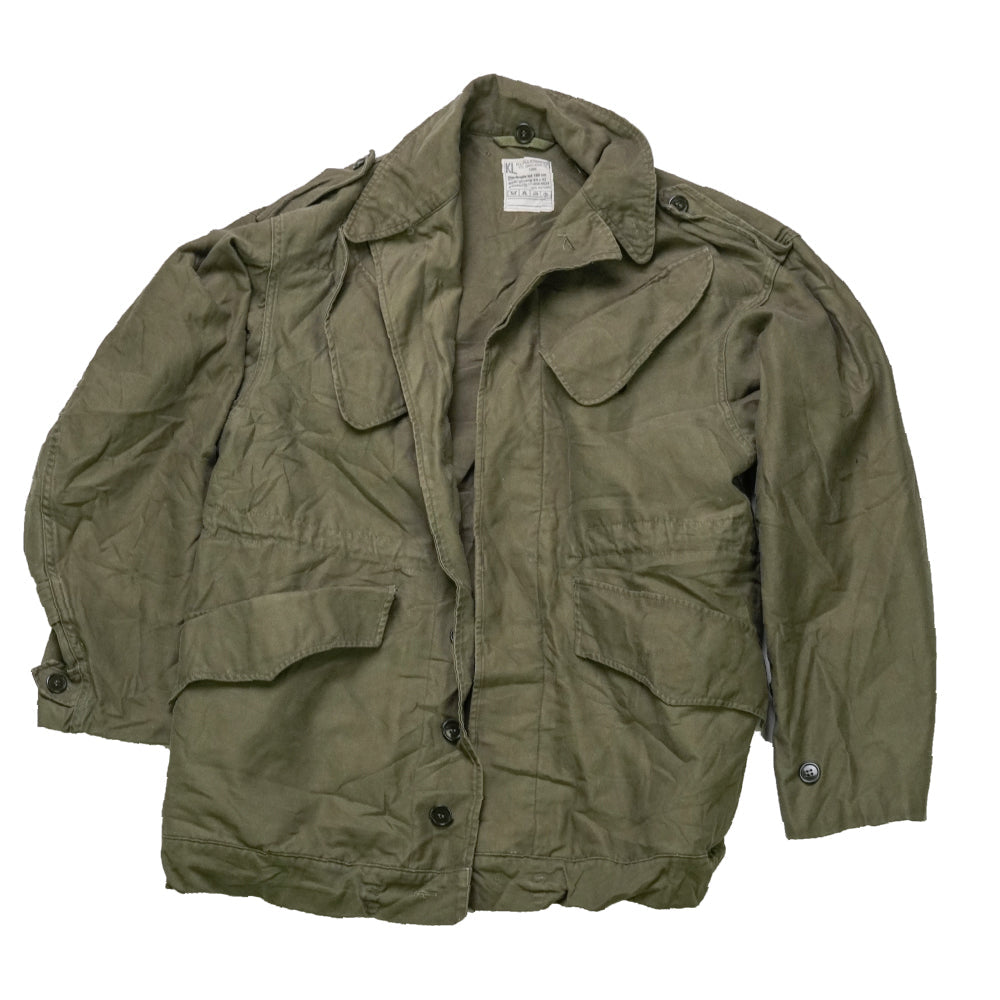 Dutch Army olive drab field jacket in small size. Military surplus garment with a classic field jacket cut and mid-weight construction.