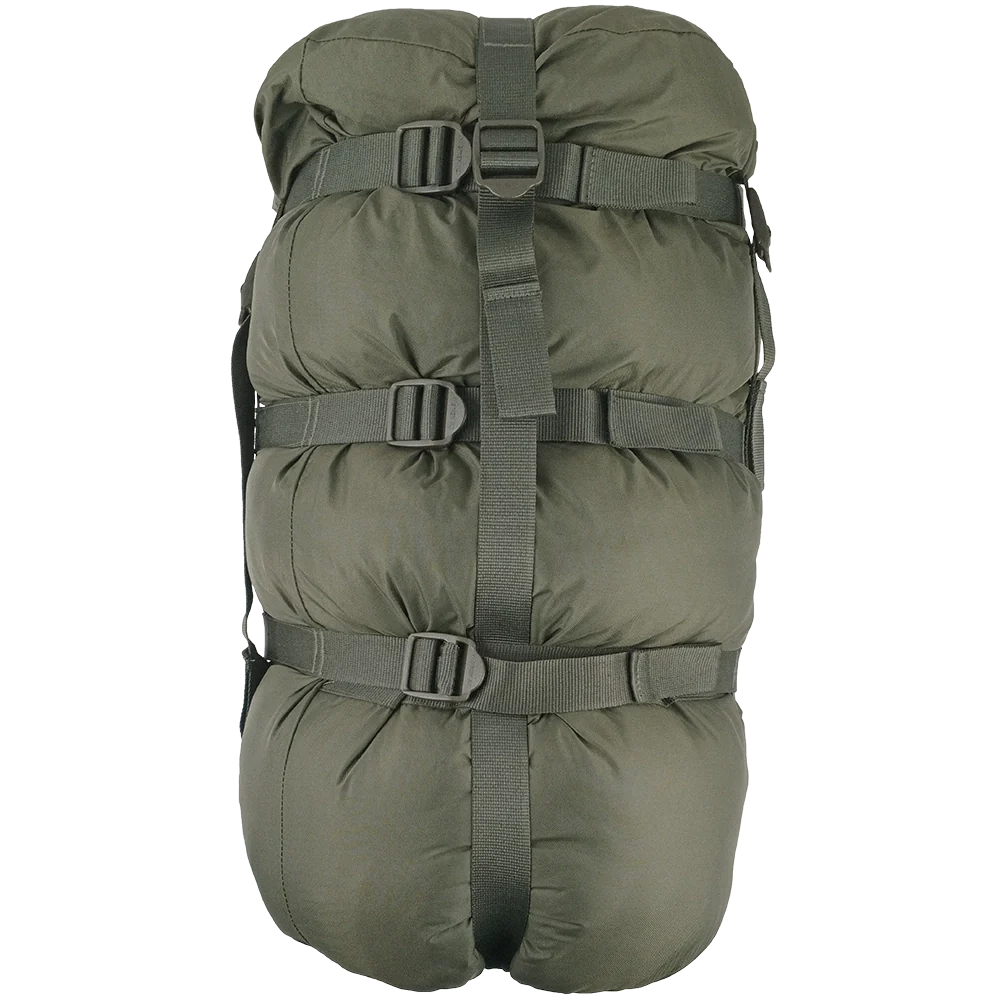 Both sleeping bags feature durable ripstop nylon shells and synthetic insulation designed to retain heat even when damp. The bags can be used separately or layered together for extreme cold, forming a modular system adaptable to various climates. A heavy-duty compression sack enables tight packing, saving space in your ruck or truck. Designed for reliability, this system meets military standards for durability, comfort, and operational efficiency, whether you're bivouacking in mild conditions or braving a cold-weather op.