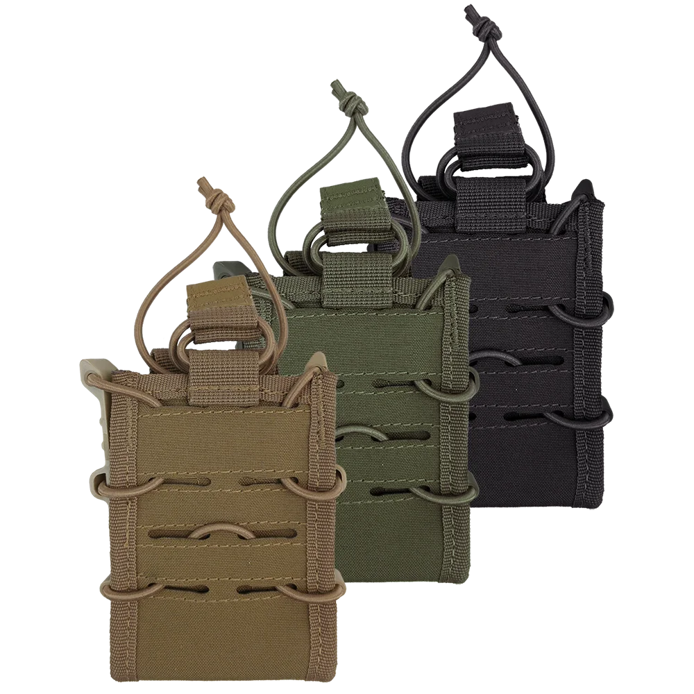If you hate flaps and lids, taco style mag pouches might be more for you. Maybe you just have a variety of different magazines and don't want a new rig set up, every time you use a different rifle. Intended to fit M16 style mags but because of the flex in the design, this pouch will fit most common assault rifle mags - adjust the width and retention strength of the pouch with elastic cord.