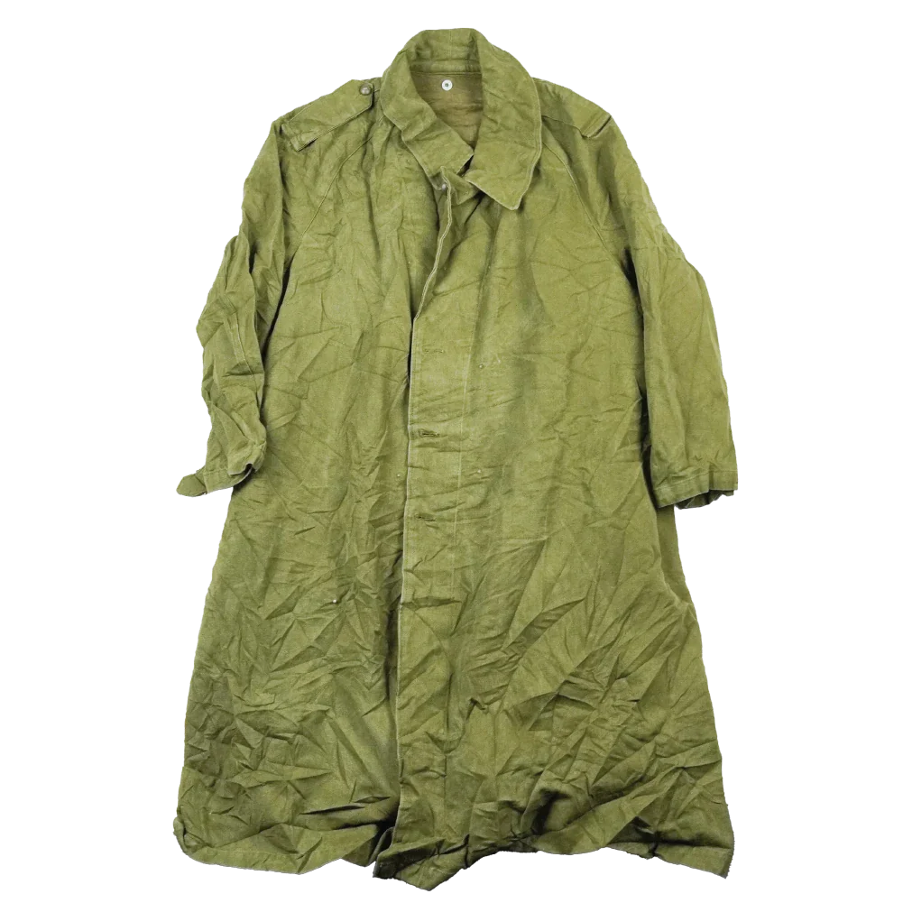 French Army M35 motorcyclists overcoat in surplus condition. This is a heavy overcoat design with a long cut, originally produced for military issue.