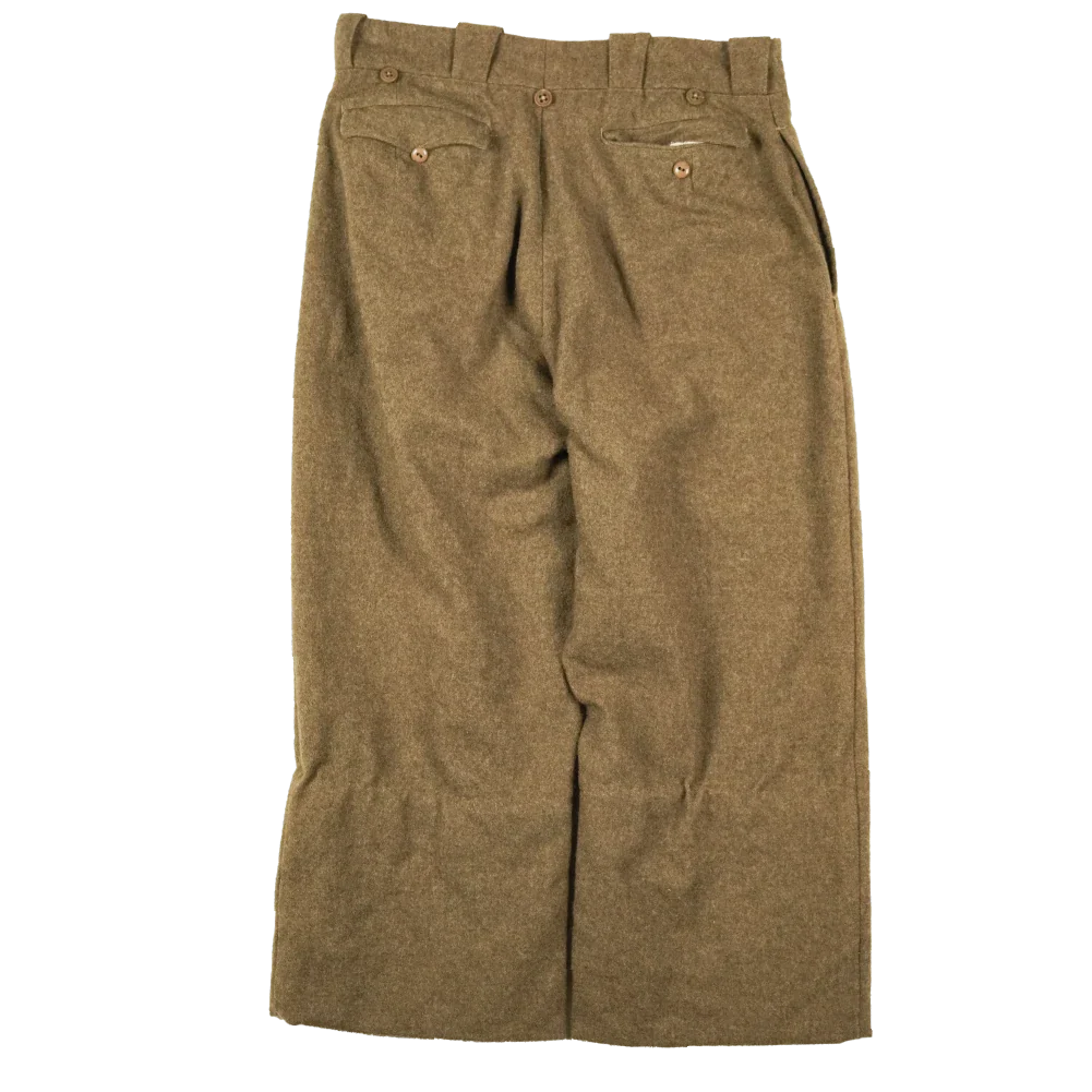 French Army M52 wool trousers in surplus condition. Classic military-pattern wool trousers with a traditional buttoned waist.