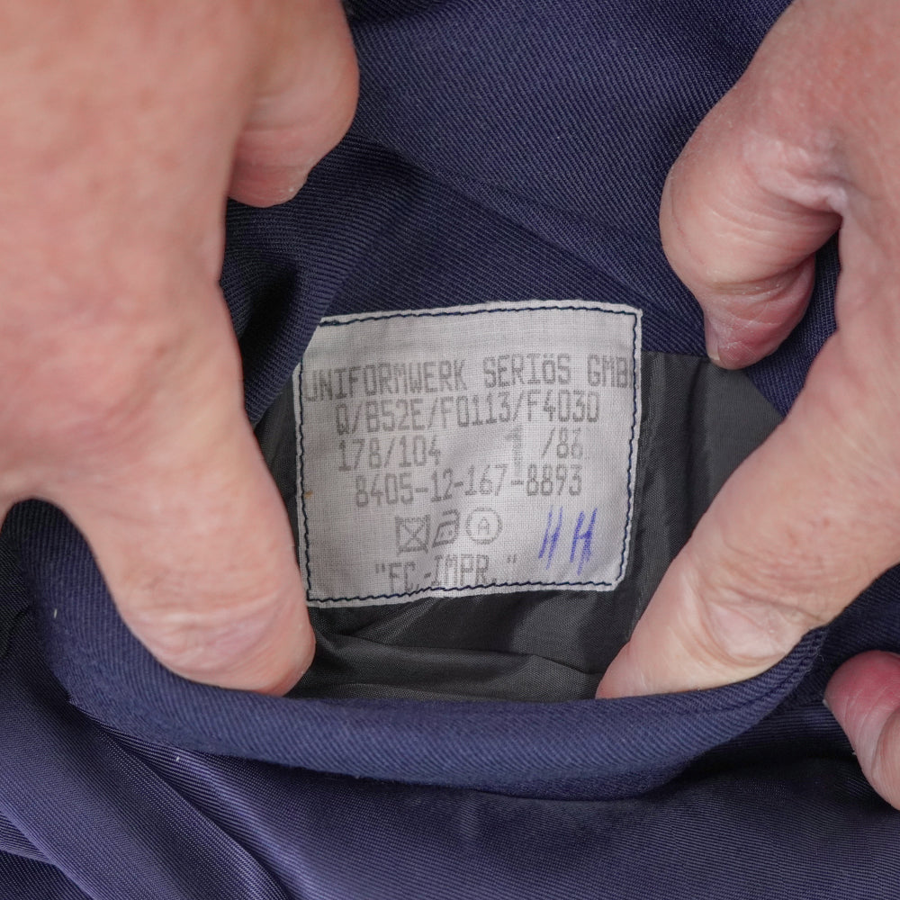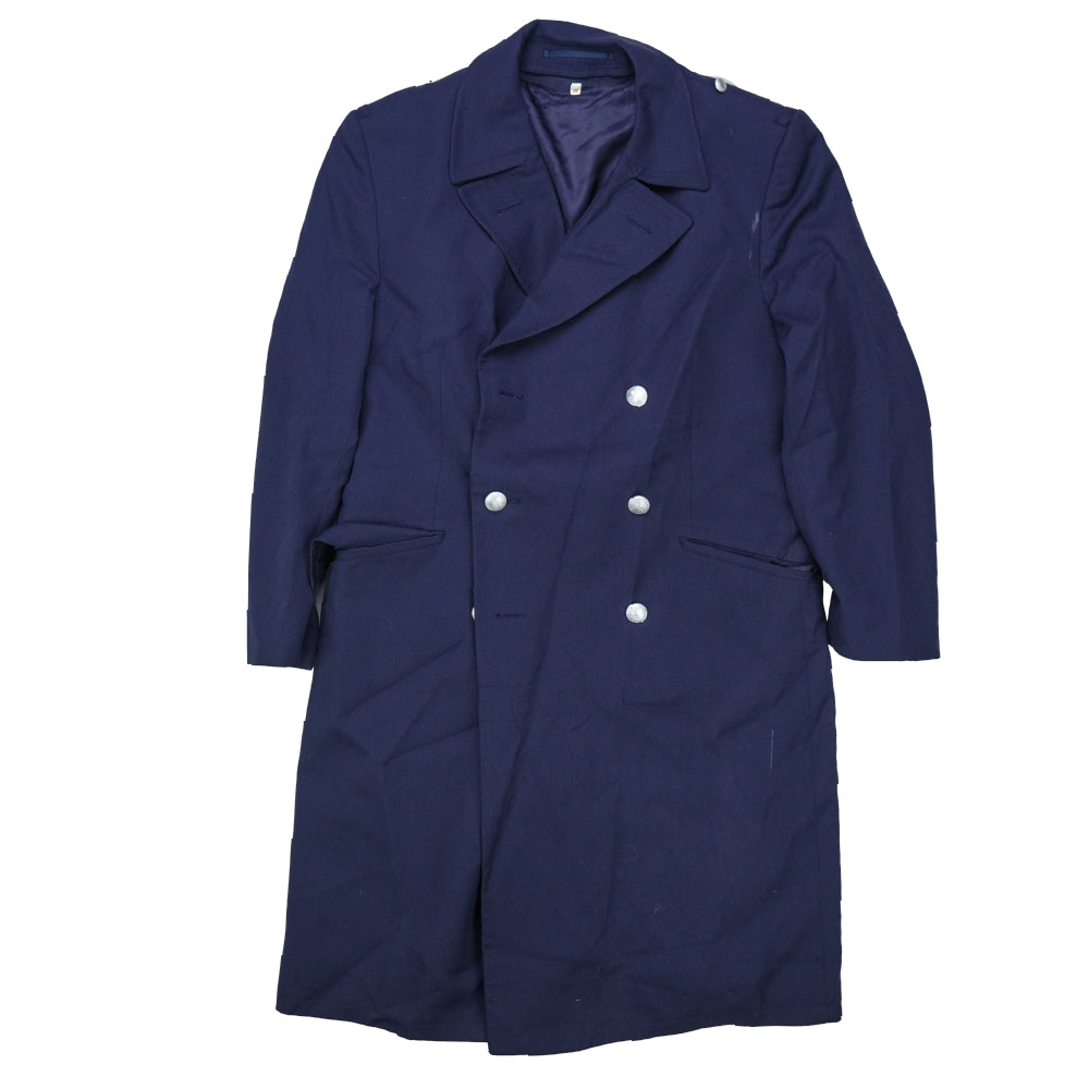 German Air Force surplus overcoat in a long overcoat cut. This military coat features a structured outer design with a full-length profile typical of formal service outerwear.