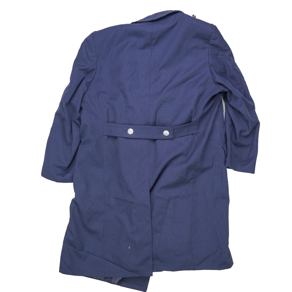 German Air Force blue overcoat in a large size. Traditional long overcoat design with a front button closure and structured collar.