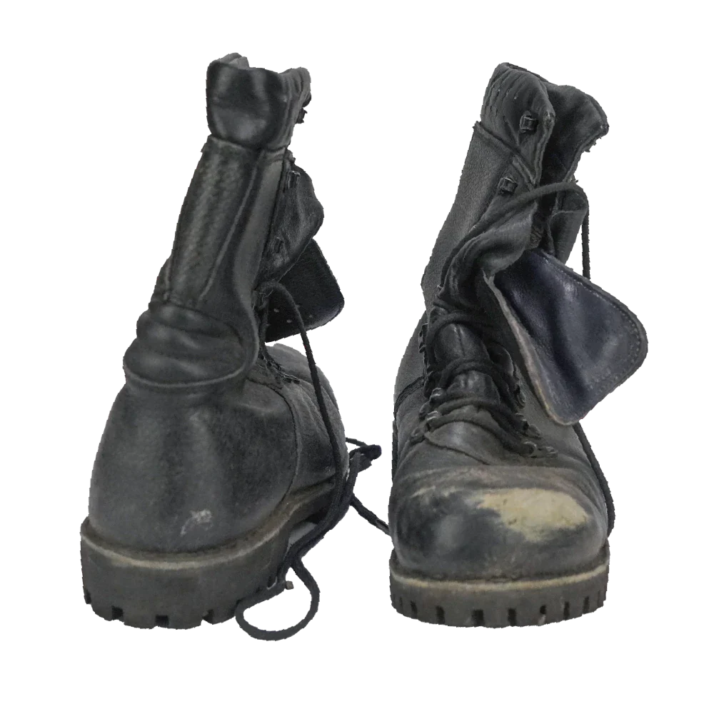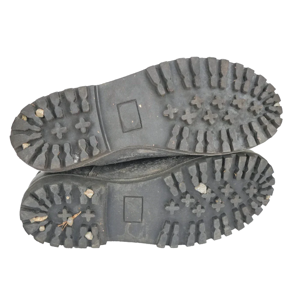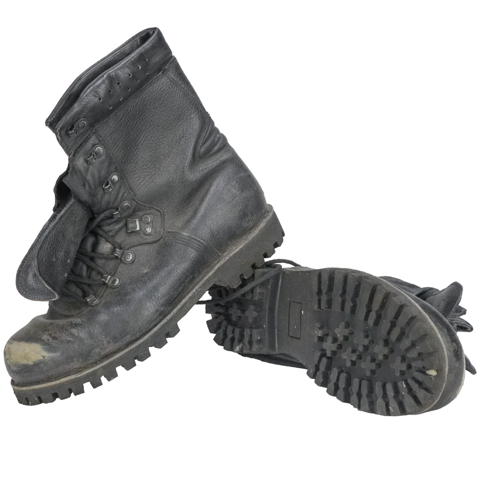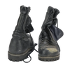 German Army Model 2000 leather combat boots with a sturdy leather upper and reinforced sole construction. This pair has been resoled and shows general signs of prior use consistent with issued footwear.