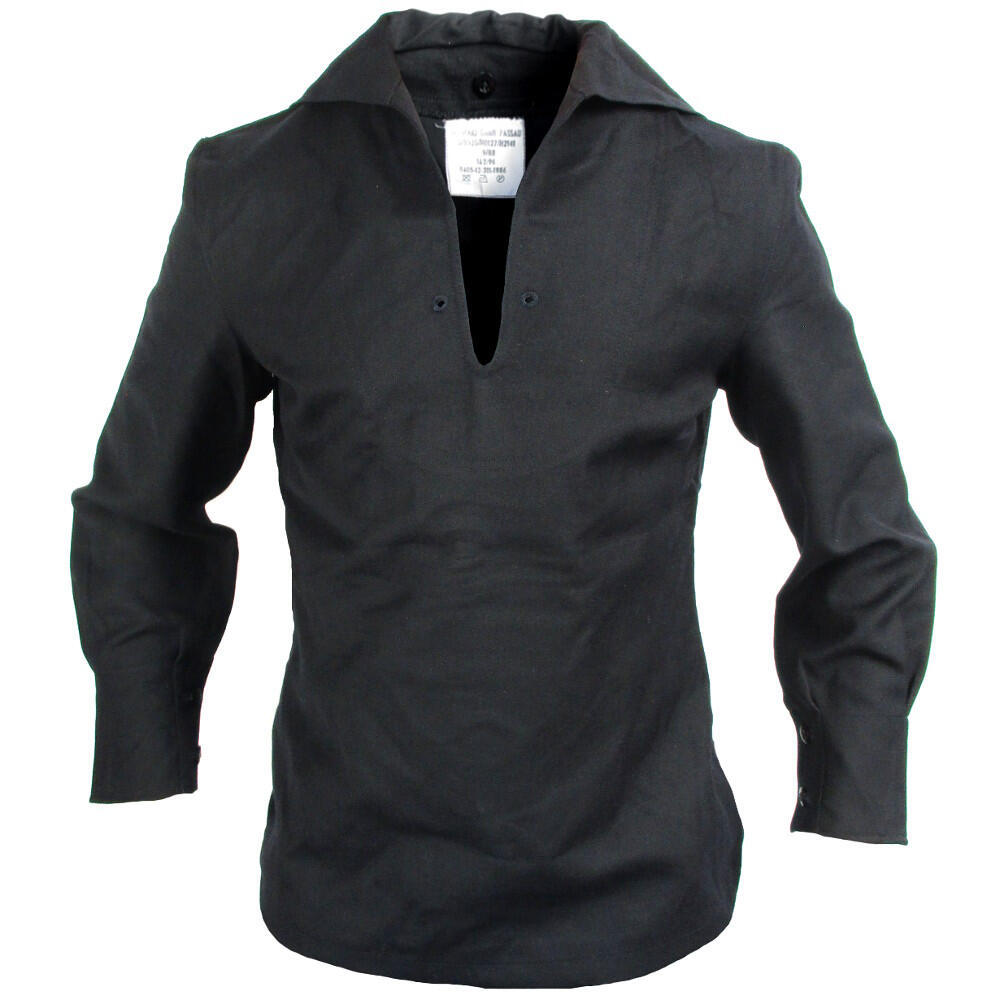 This genuine issue German Navy middy is a classic sailor shirt. "Middy" is the nickname given to the naval shirts worn by midshipmen. The middy is constructed from a durable cotton blend fabric and comes in a dark, navy blue colour. Each cuff can be adjusted with two buttons. The inside of the neck area features five buttons to attach a sailors collar (not included). This is a classic shirt that has a place in every collection. Pick yours up today!