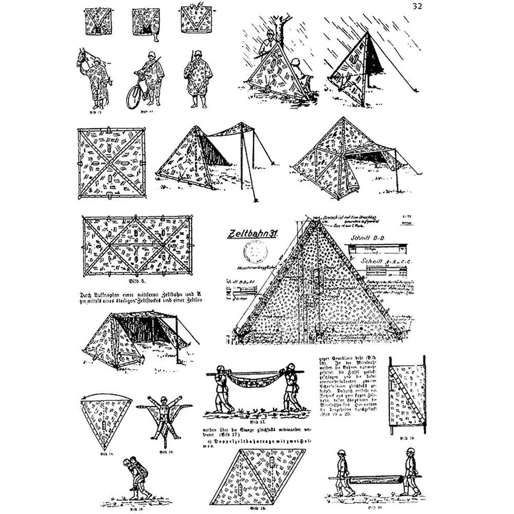 The German military was the first to utilize widespread issue camouflage print and it all started with these 'Zeltbahns' in the 1930's. The zeltbahn was a highly adaptable piece of equipment as well - it can be worn as a poncho, one man shelter, casualty litter, 4 piece tent or more! Each soldier was issued one and could snap his one together with other members of his squad forming a large tent, the sky really was the limit!