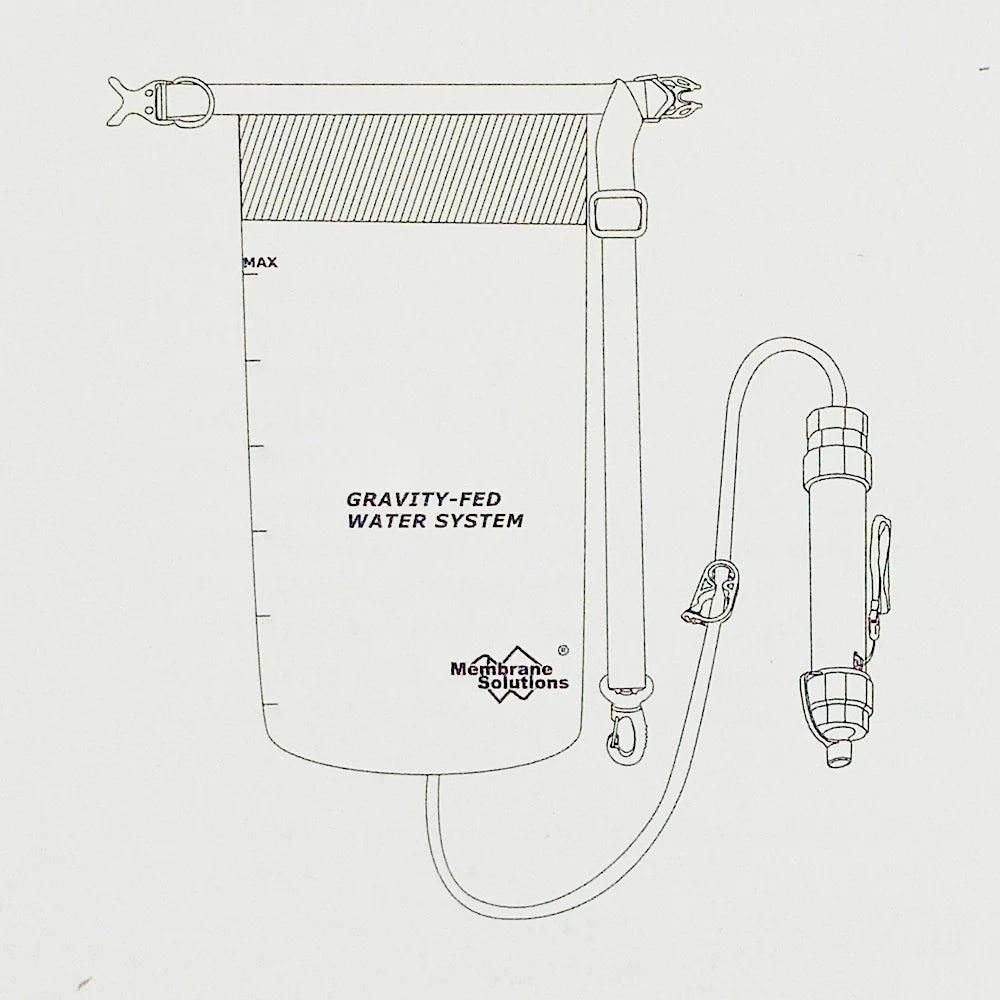 This is the smaller volume Membrane Solutions Gravity Water Filter Bag, with a volume of 1 gallon (3.79 litres). Designed to filter stored fresh water from an open body of water such as a stream, river or lake. Using the filter straw, it can be used to drink directly from surface waters. Compact, lightweight and simple, this is a great hiking, survivalist or outdoors companion and a great item to have in your emergency kit.
