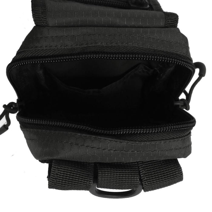 Easily keep your essential kit and every day carry gear tactically placed on your belt. With a military style design, this pouch features a MOLLE (Modular Lightweight Load-carrying Equipment) attachment which will fit over belts 10cm wide or less. The pouch is split into two main compartments with two pockets inside each compartment and a zipped pocket on the front flap.
