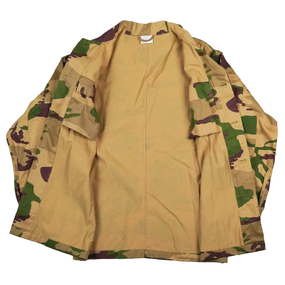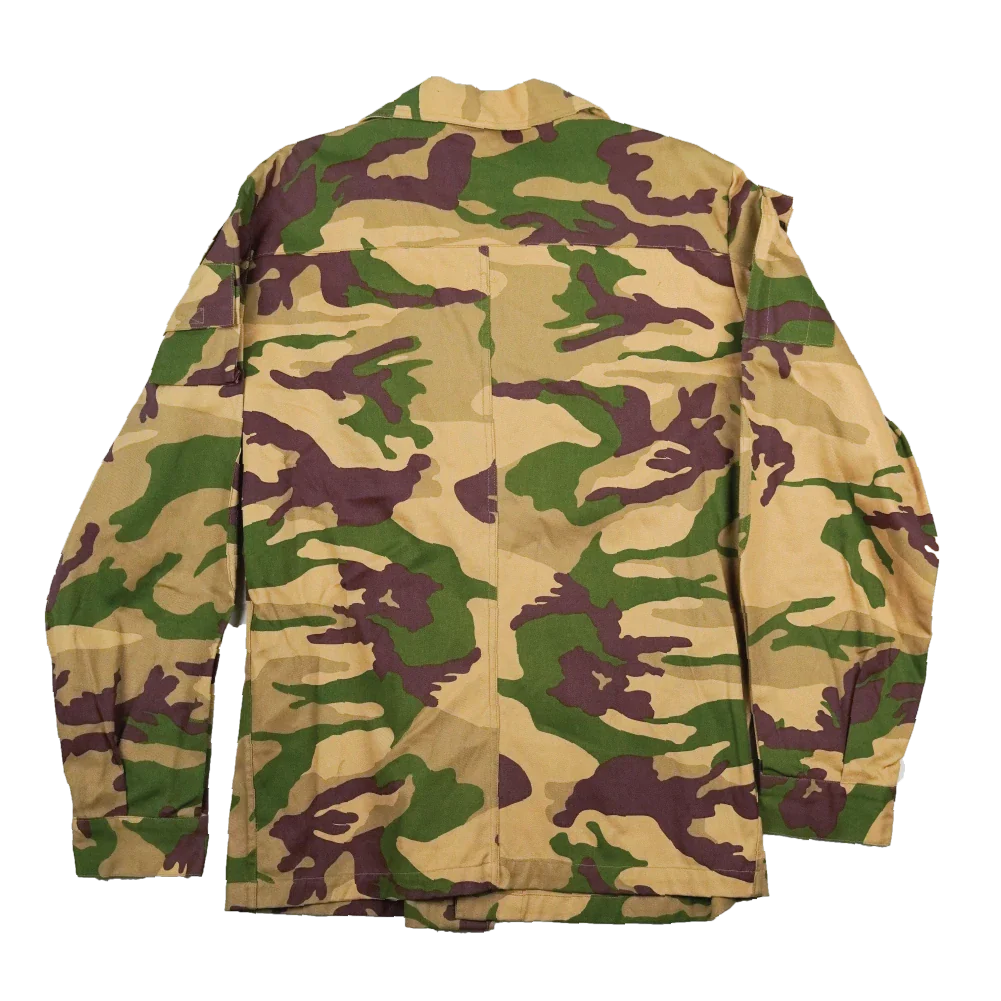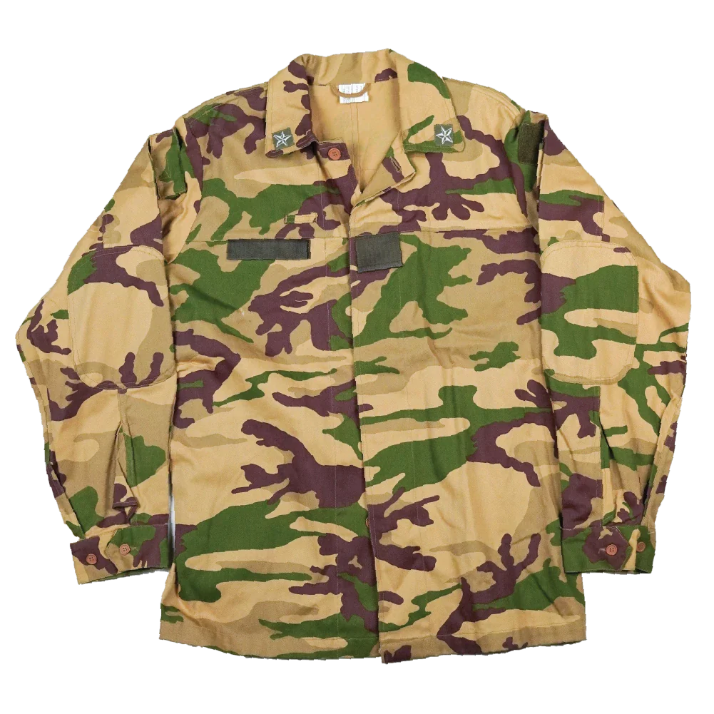 Italian Army desert camouflage field shirt with a button-up front. The shirt features reinforced shoulders and elbows, multiple hook & loop pockets, and underarm vents for airflow.