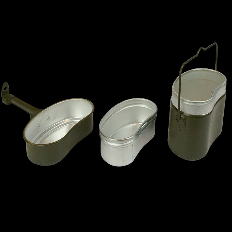Well, well well. If it isn't another European mess kit that looks oh-so-similar to other European mess kits. Must be doing something right, then! These 3 piece kits come to us from the Italian Army. A nice addition for your loadout or camping trip!