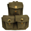 These vintage pouches from the Italian Army were used to store ammunition for Enfield rifles, designed to hold up to six 5-round charger clips of .303 rounds. Some are likely British made but had been surplus and sold onwards. The pouches are constructed from cotton canvas, as was the standard material of choice back in the 1940's and '50's. Each individual pouch is divided in half to hold two clips. On the rear are brass tabs for attaching to a webbing belt.