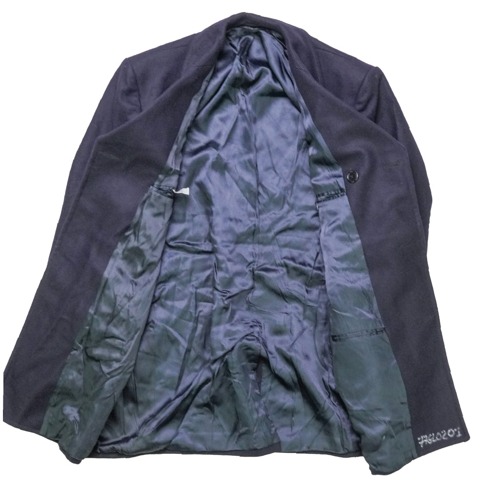 Authentic Italian Navy double-breasted wool peacoat in classic naval style. Constructed from heavy wool with wide lapels and a traditional anchor-button front. Fully lined with a structured military cut.