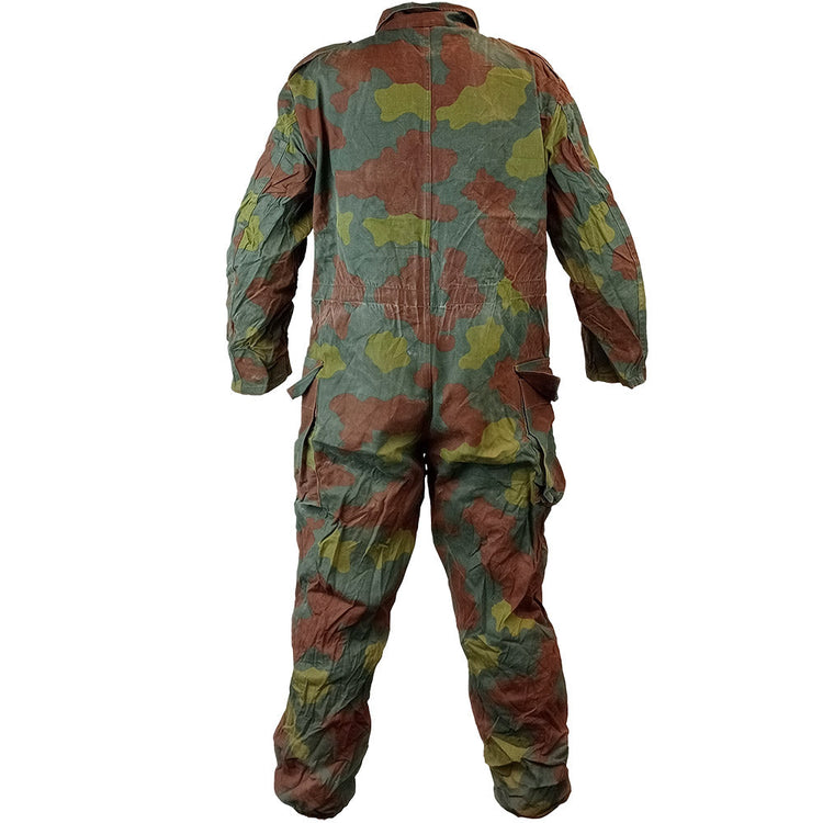 Mamma Mia! Brigata Marina San Marco! The Italian naval amphibious force, the San Marco Marine Brigade had this rockin' camouflage pattern almost exclusively, and is now often called ''San Marco'' camouflage. It's kind of like good old Telo Mimetico but less wiggly. Around the 1950's the modified Telo' pattern was issued and the Navy version had a turquoise-ish base colour - which most of these have. Because some of these have a green base (see picture), these probably snuck in from the army!