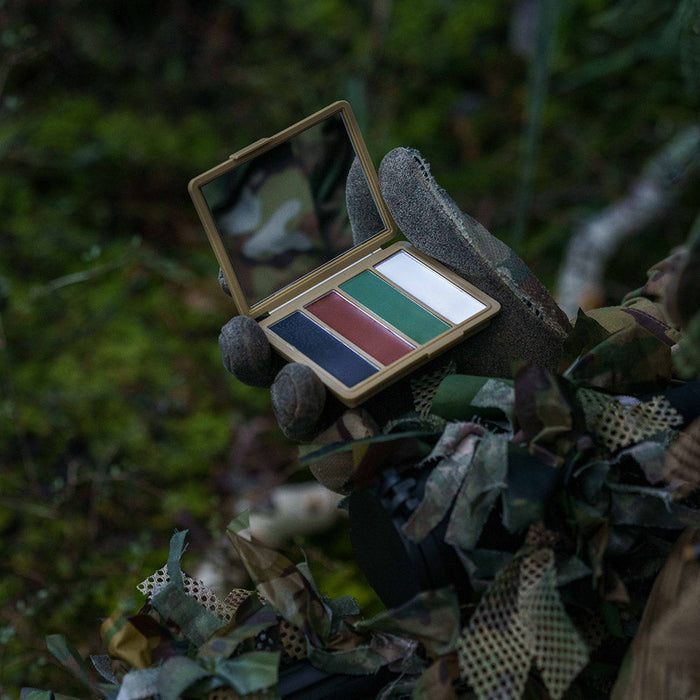 New Zealand owned, KiwiKitt set out to improve the world of camouflage face paint - and that they did. Incorporating insect repellant and a bit of sun protection, they also made this face paint easy to use. No one wants to use useless or annoying camo when it matters. KiwiKitt developed this four colour palette (black, dirt brown, forest green & alpine white) with the user in mind, as well as effectiveness. Buttery smooth application and blending, with easy wipe off removal. Somehow not skimping out on colour pigment. Wizardry, perhaps. Clever and useful, definitely. Tested in a range of hot to cool, wet to dry environments, KiwiKitt is serious about making a reliable product.