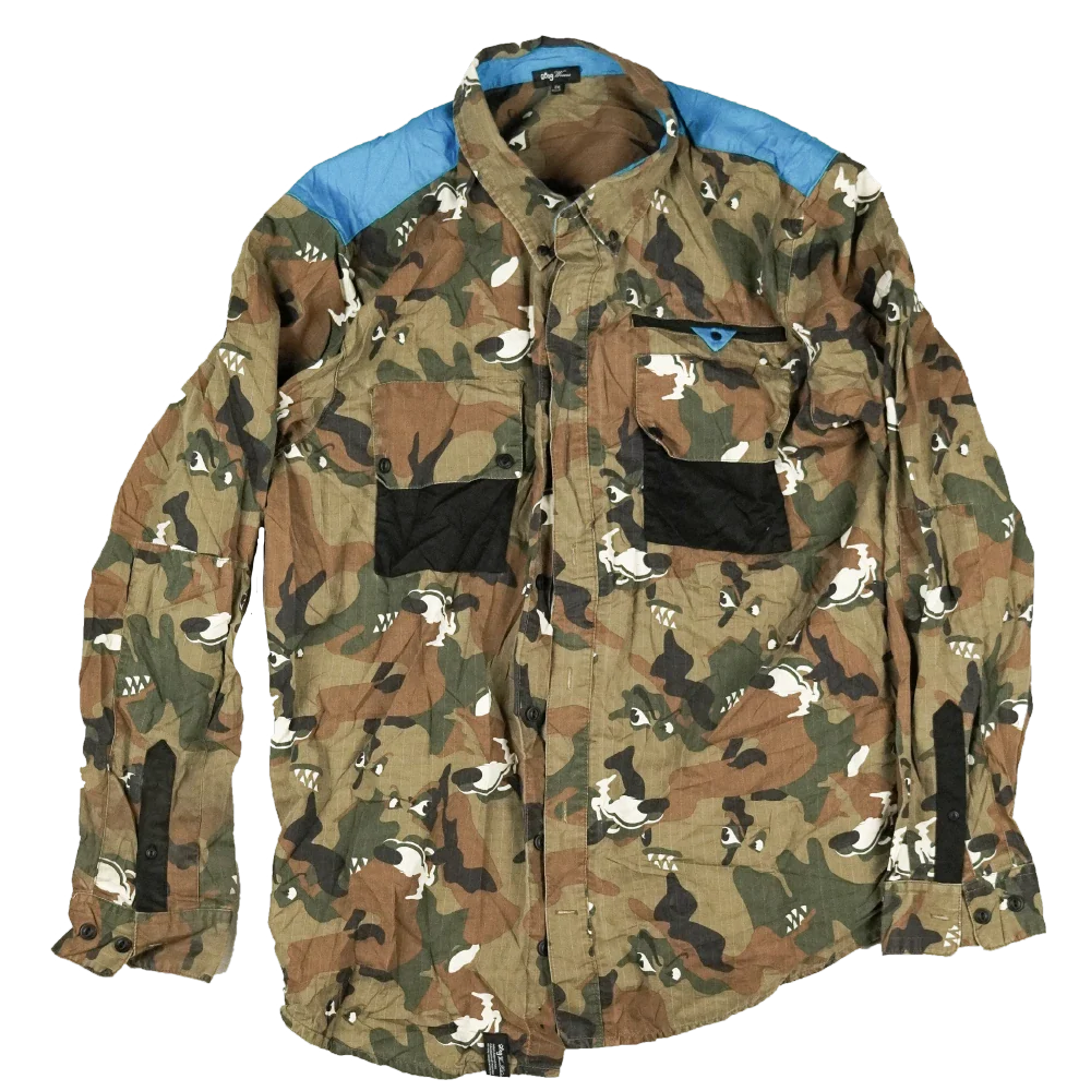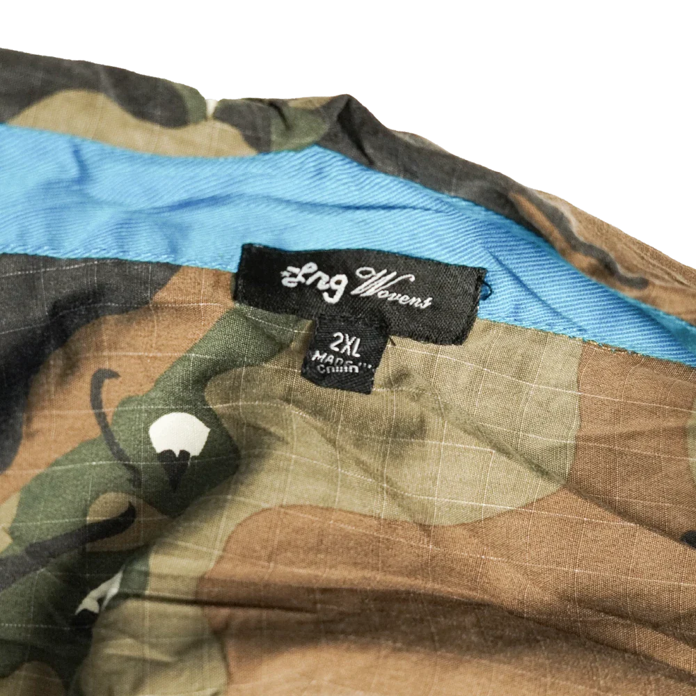 Commercial long-sleeve button-up shirt by LRG (Lifted Research Group), finished in the brand’s Wolfland camouflage pattern. This is a streetwear fashion garment with a standard button-front construction and chest pockets.