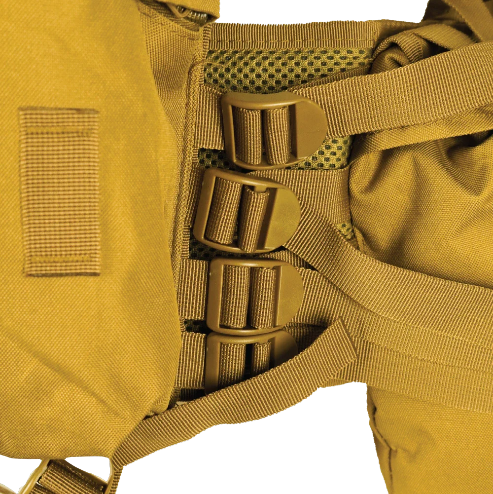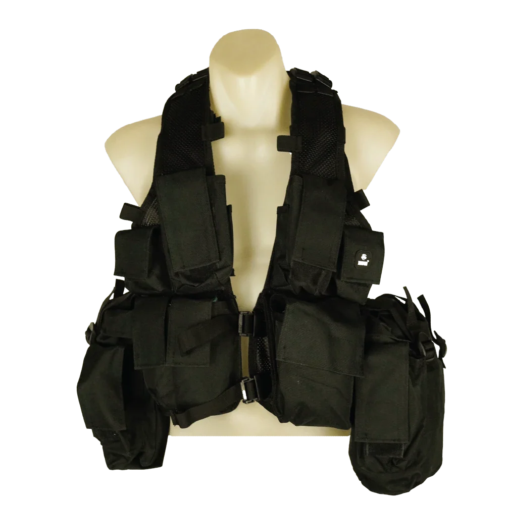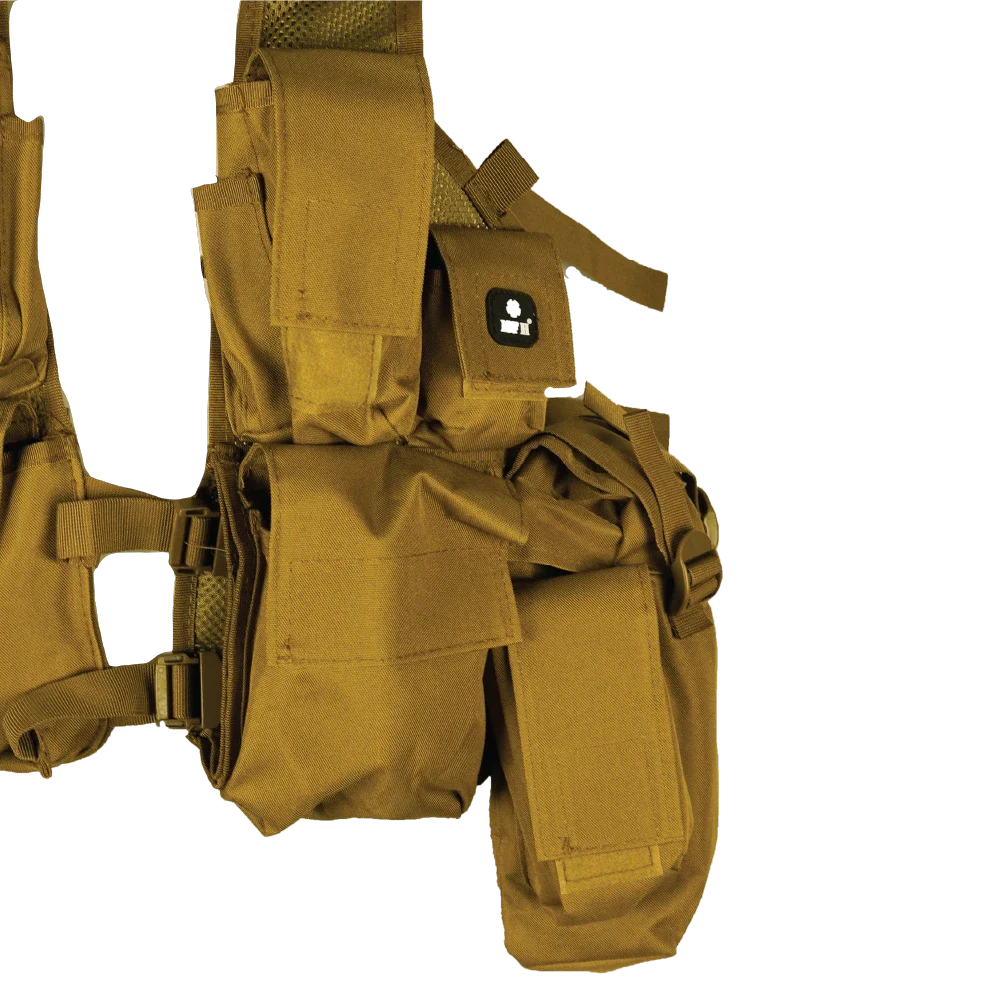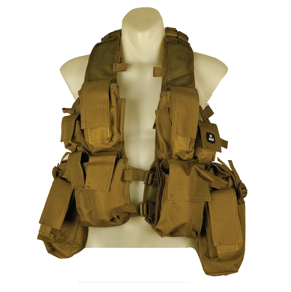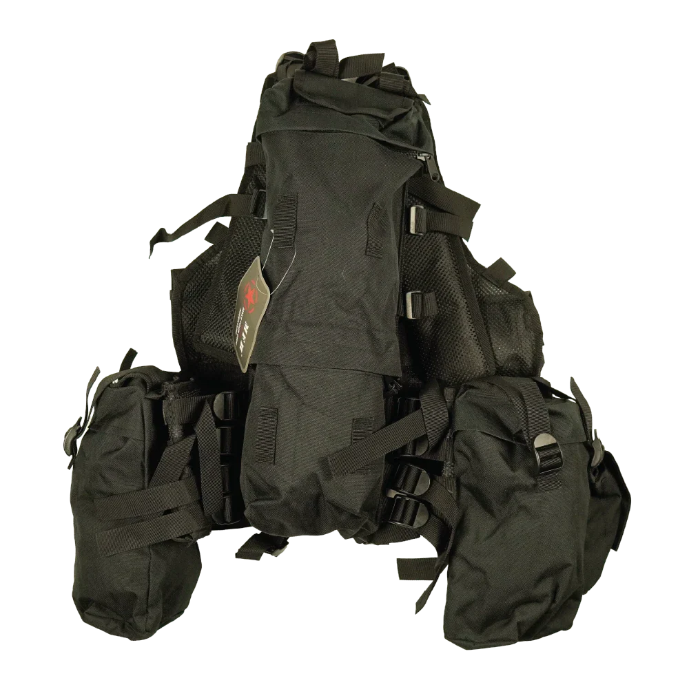 Commercial M83 assault vest in a black/coyote colourway. Vest-style load-bearing platform with integrated pouches and an adjustable fit.
