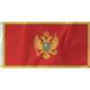 Montenegro adopted their flag in 2004. The flag has a red backing bordered with gold. In the centre there is the Montenegrin coat of arms in gold as well.