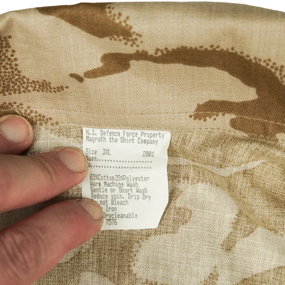 New Zealand Defence Force Desert DPM camouflage shirt. Standard cut military shirt with button front and chest pockets.