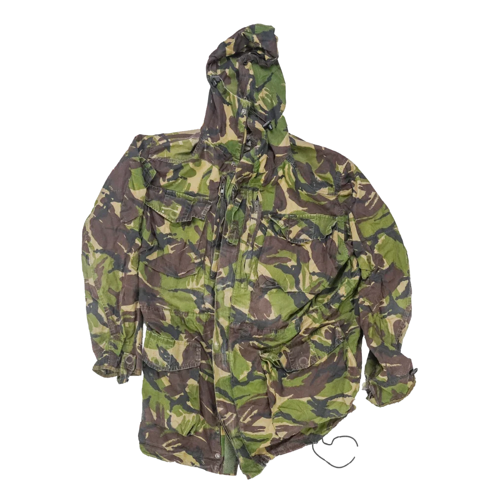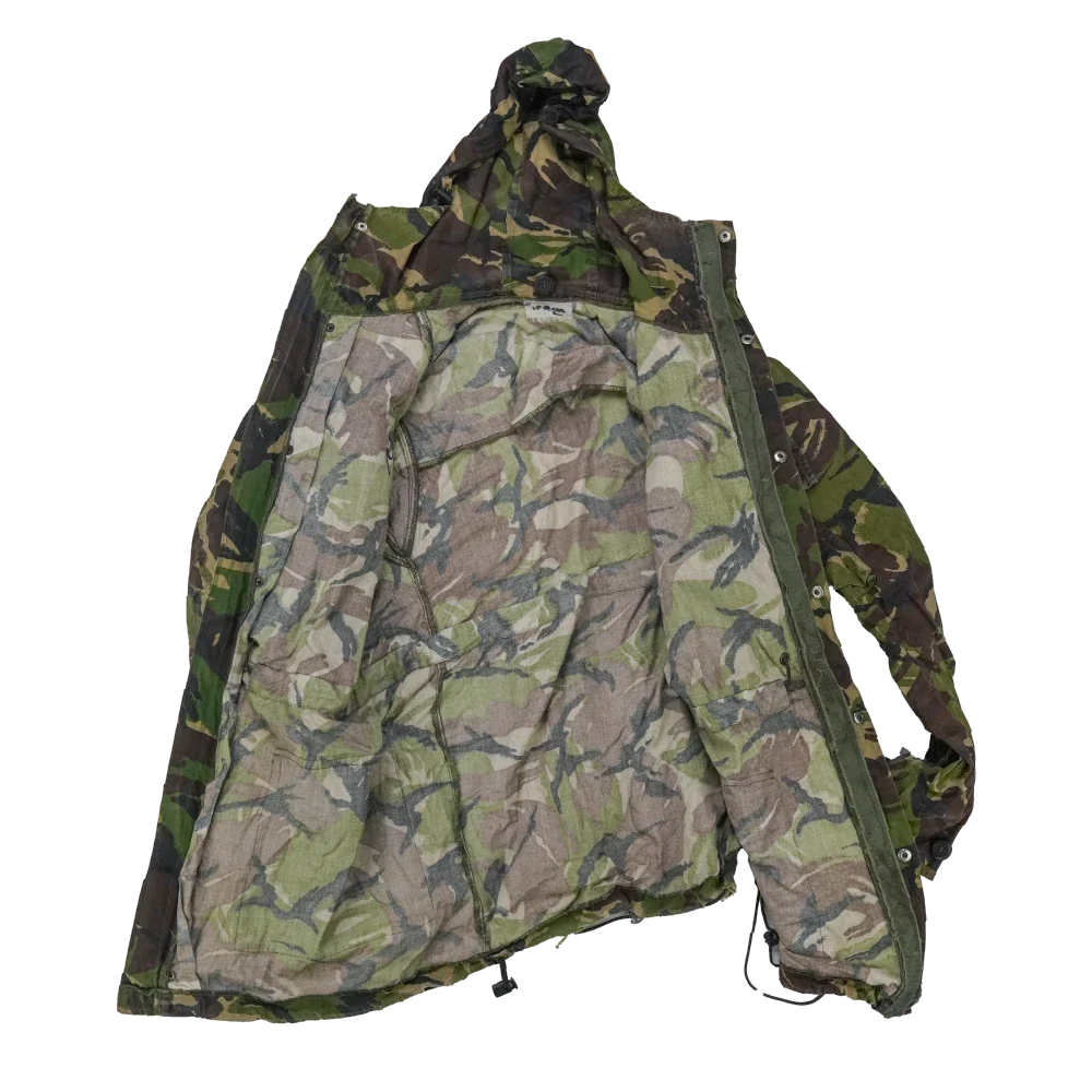 New Zealand Army DPM windproof jacket in a large size. This is a military surplus outer layer with a DPM camouflage pattern and windproof construction.