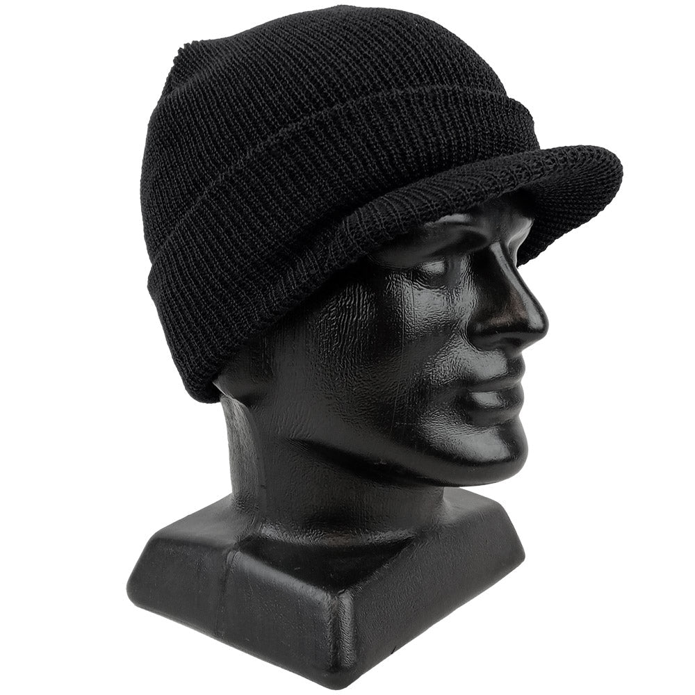 Styled after the good old boys in the jeeps, the woollen peaked beanie!