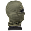 This olive drab balaclava is worn over the head and covers the chin, mouth and nose, leaving a hole for the eyes. The thin, breathable construction allows it to be comfortably worn underneath a helmet, goggles and face masks. It fully covers the neck as well for maximum protection.