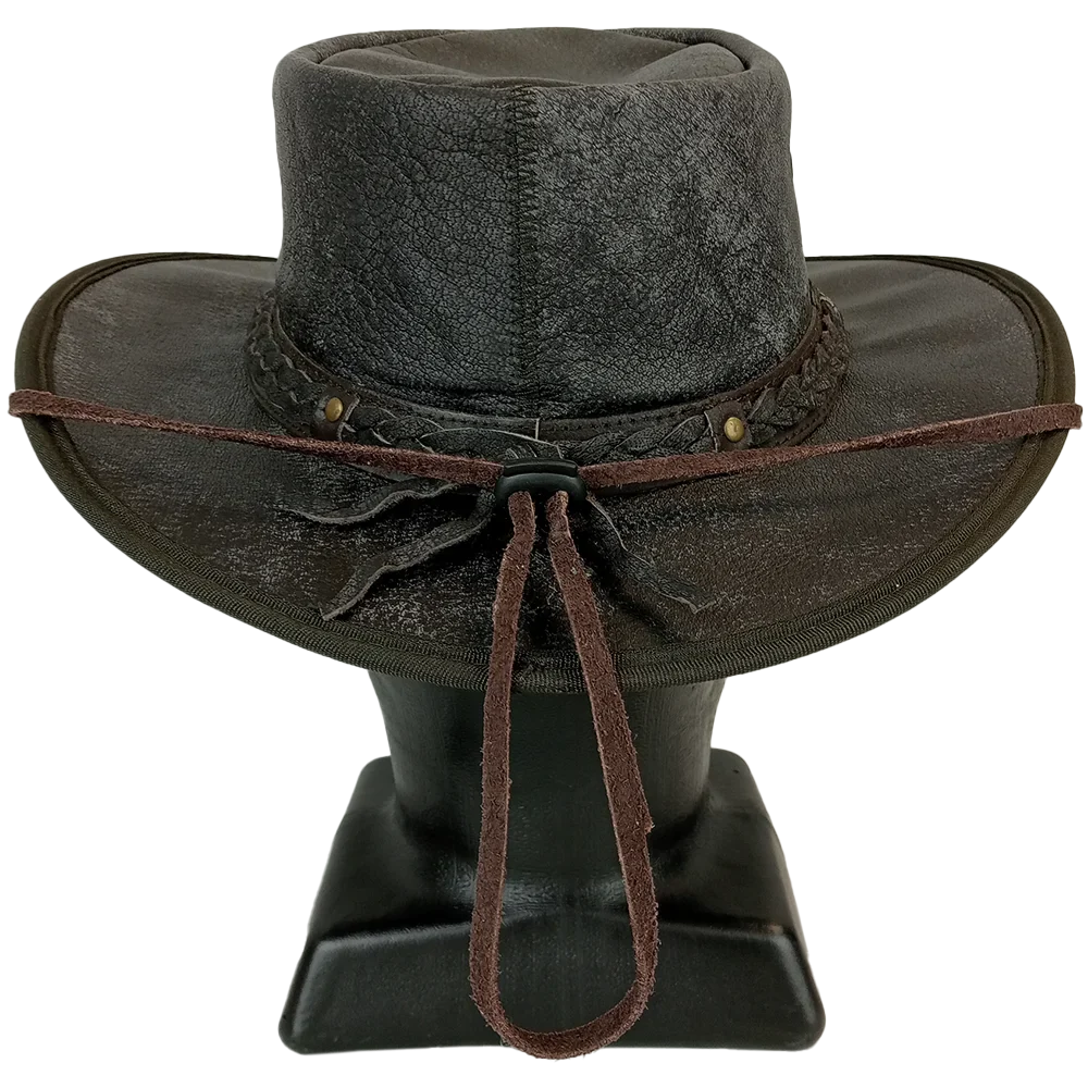Oi mate! - where are ya going without a hat on?! Outback Trading company make these quality fair dinkum ironbark hats. Real cowhide leather construction for real lads & ladies! A nice big brim keeps the sun out of your eyes as well as having an internal wire for adding desired shape. Eyelets allow your head to breathe (important in the outback!) and has a moisture wicking sweatband to help in this regard also. But what can we say about the main feature - the style of these is what sells themselves!