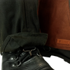 Made from 100% oilskin cotton they are waterproof and tough to boot (sorry about the pun). To use them they have a hook underneath the front to hook into your boots laces and a pair of D-rings which you can affix your choice of underwire (underwire not included). The tops are elasticated to keep a good flexible seal around your calf to keep the elements from seeping in. Removing them quickly is easy with a hook & loop opening with snap domes to keep it firmly in place.