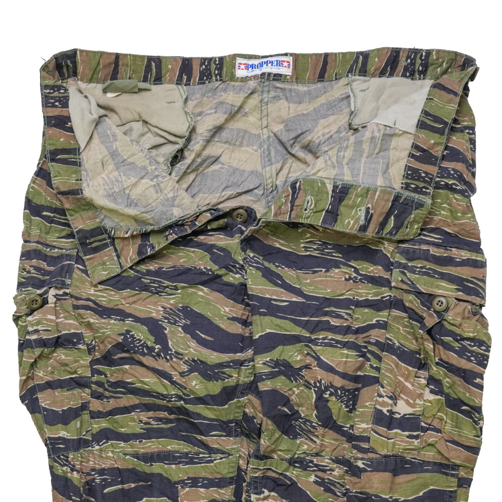 Propper Tiger Stripe BDU trousers in a classic camouflage pattern. Commercial production with traditional BDU styling and durable construction.