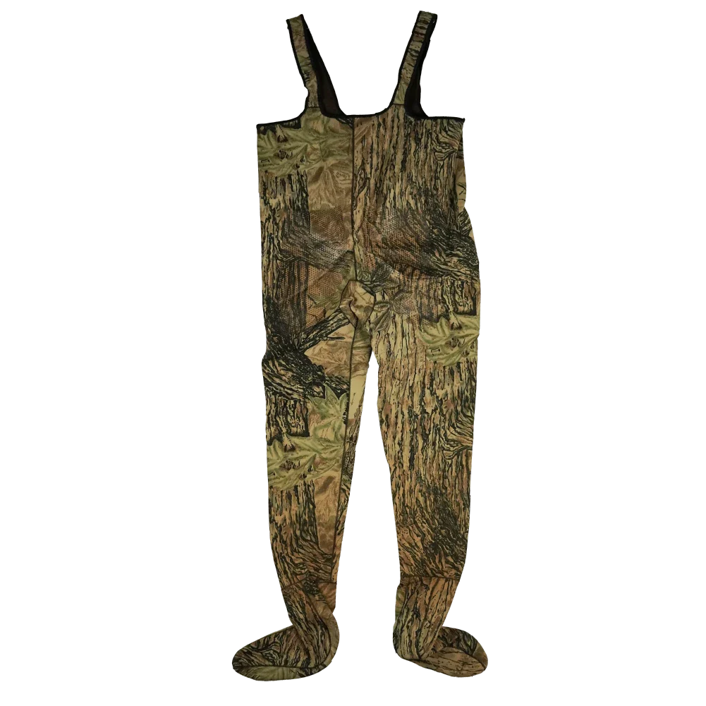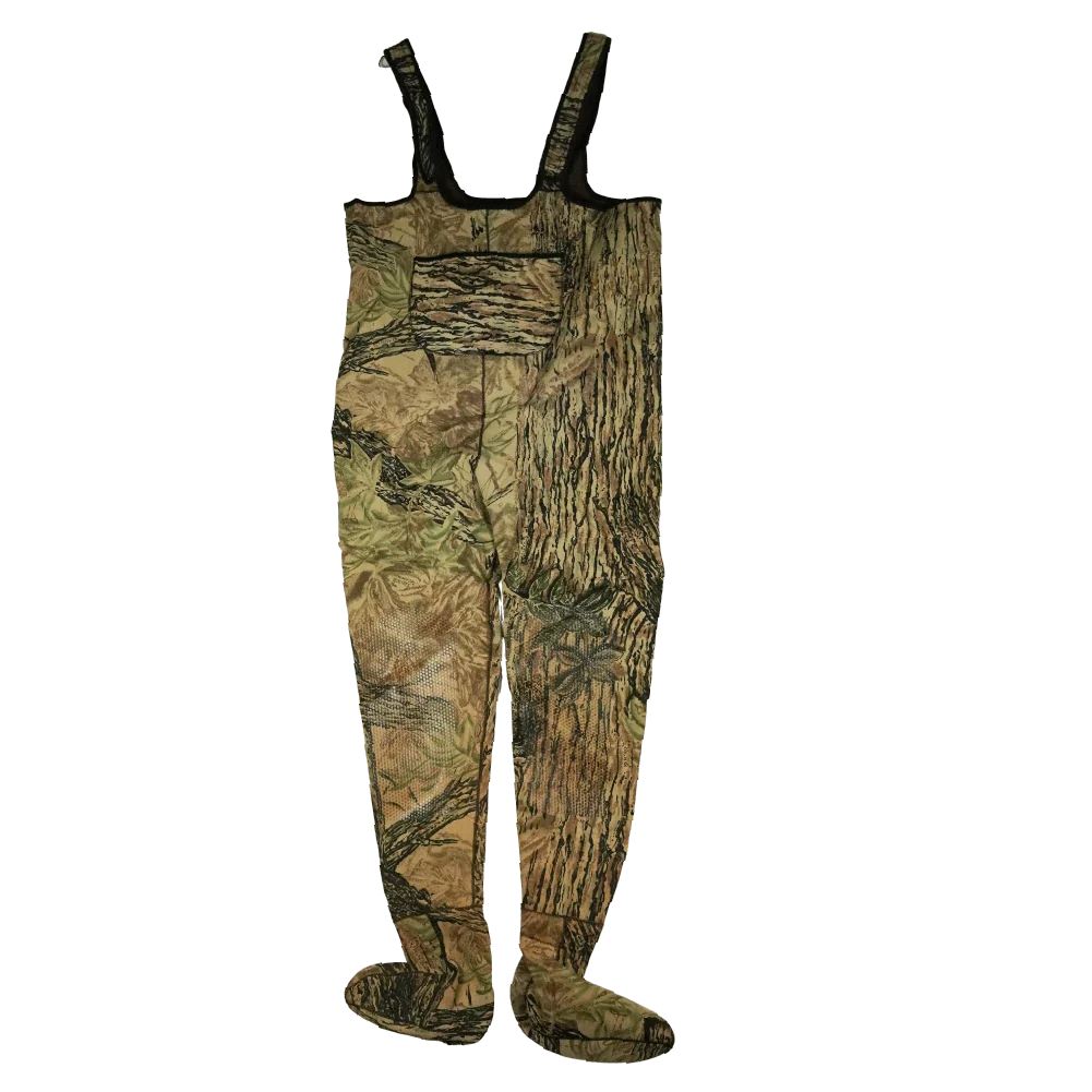 Chest-high camouflage waders in a bib-and-brace configuration with integrated booties. Constructed from neoprene with a waterproof shell and finished in a Realtree woodland pattern.