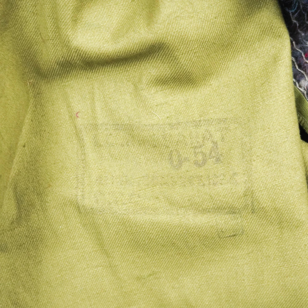 Romanian Army M93 parka supplied with a removable inner liner. Features a full-length buttoned front with storm flap and an integrated hood that folds into the collar. Waist and hem cord adjustments are present.