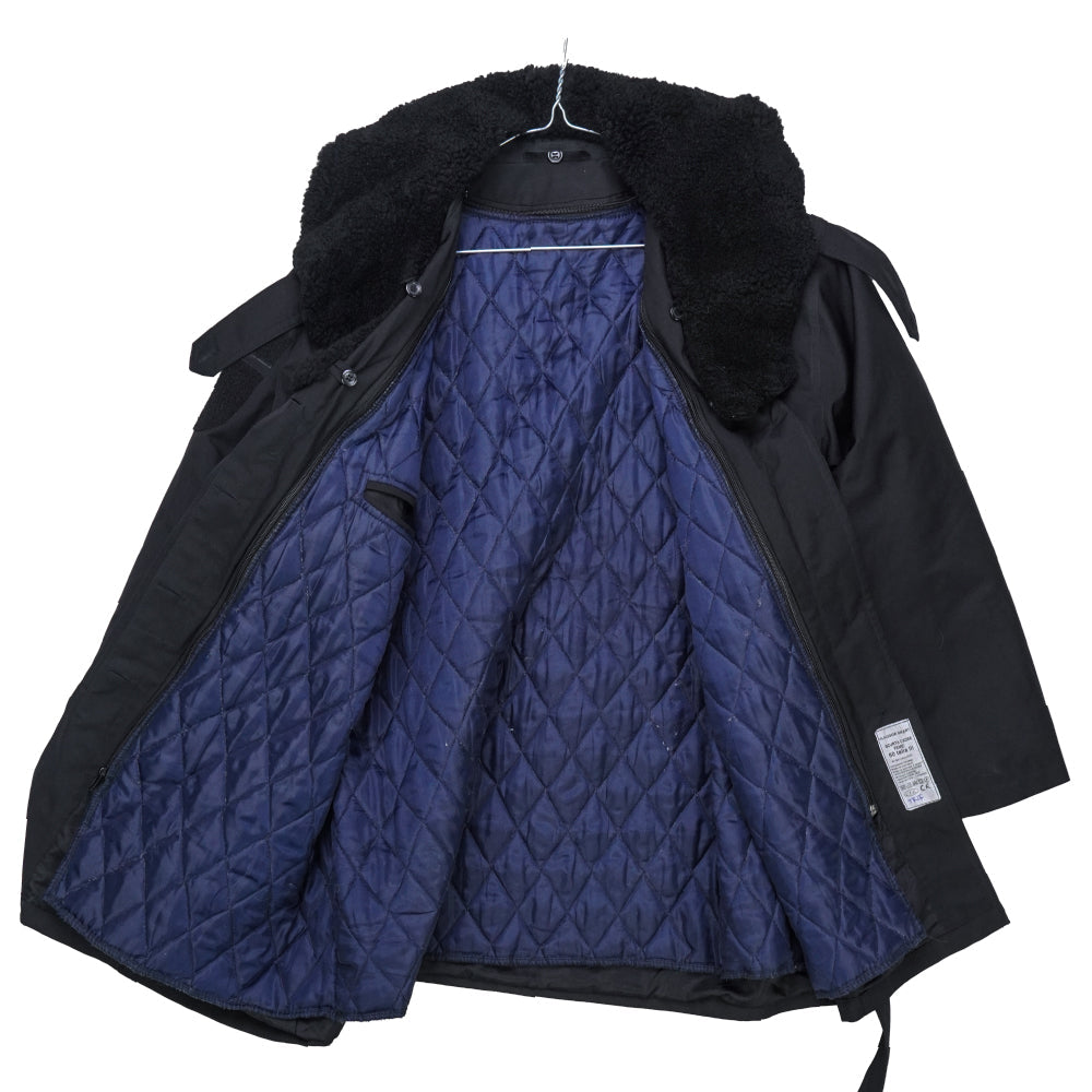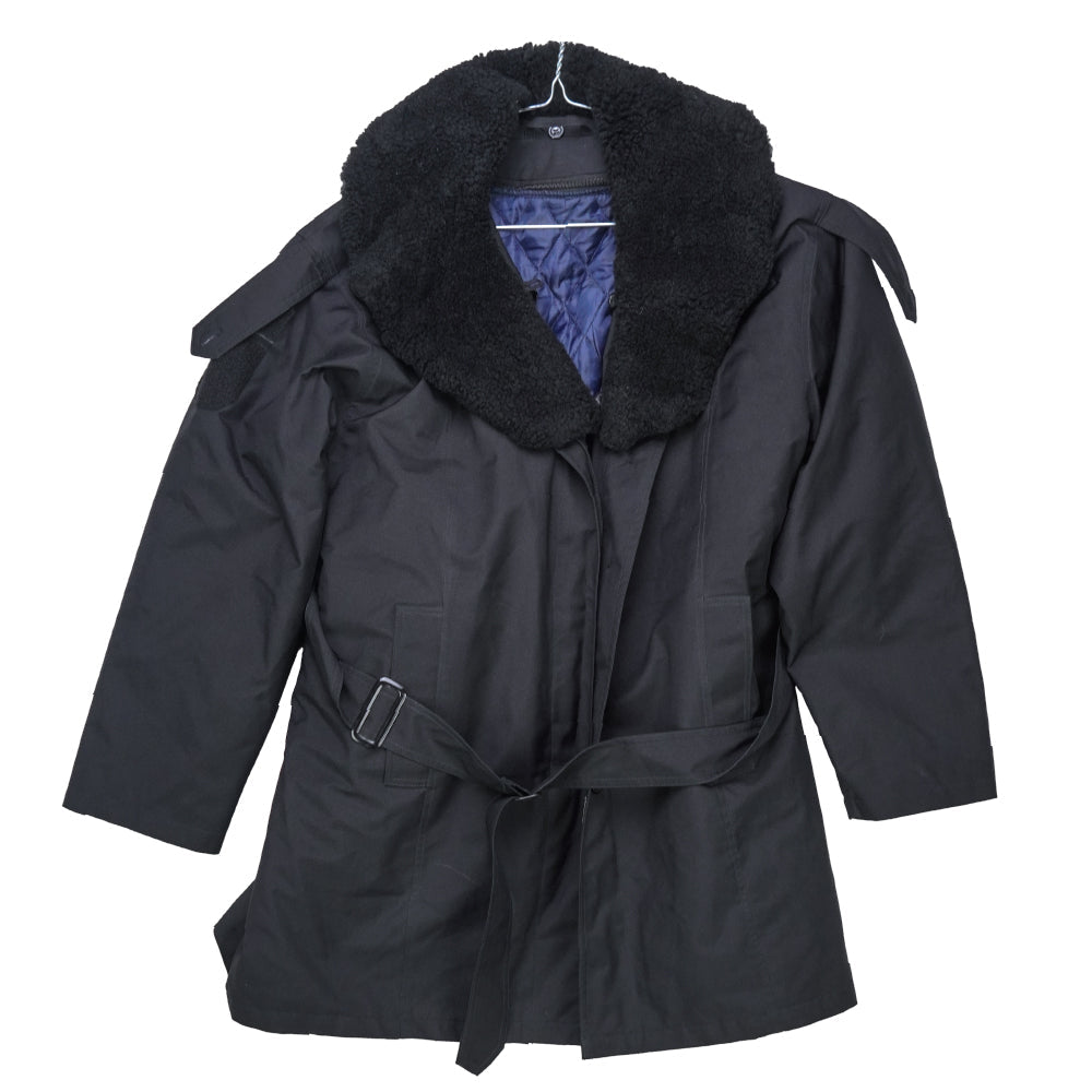 Women's parka from the Romanian Naval Academy. This military surplus outer coat is sized Women's Medium with a short length and weighs approximately 1.2 kg.