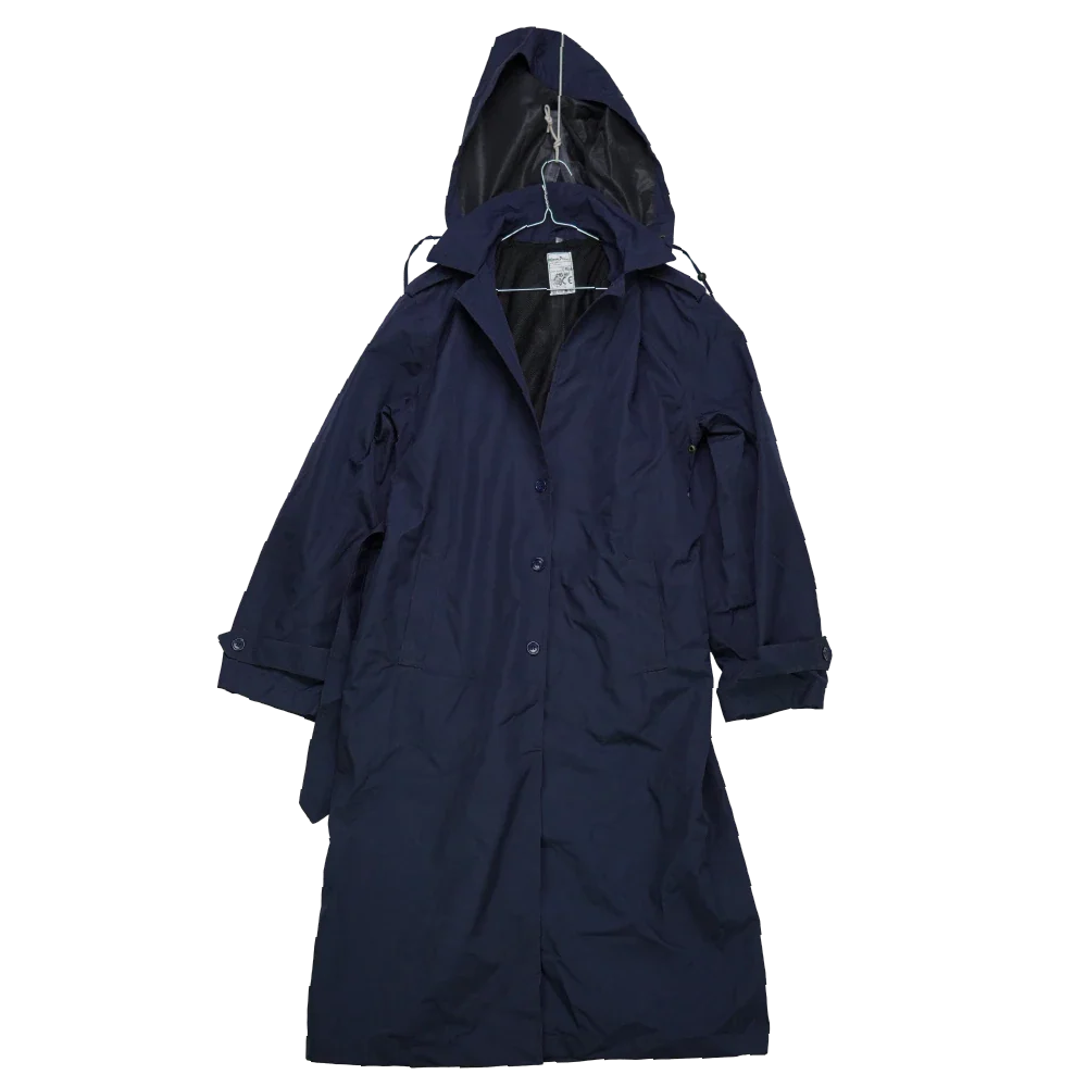 Romanian Navy surplus waterproof trenchcoat. Full-length design with a water-resistant outer shell.