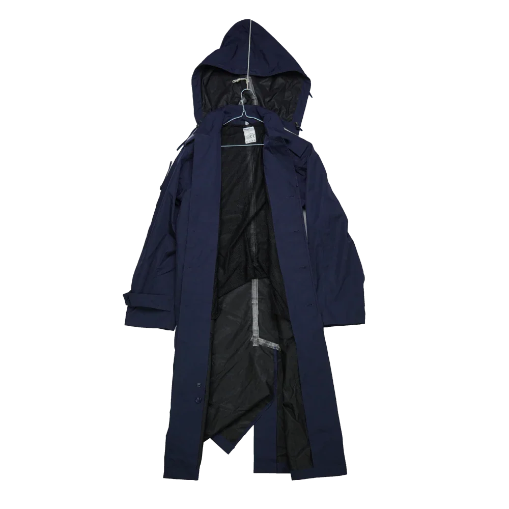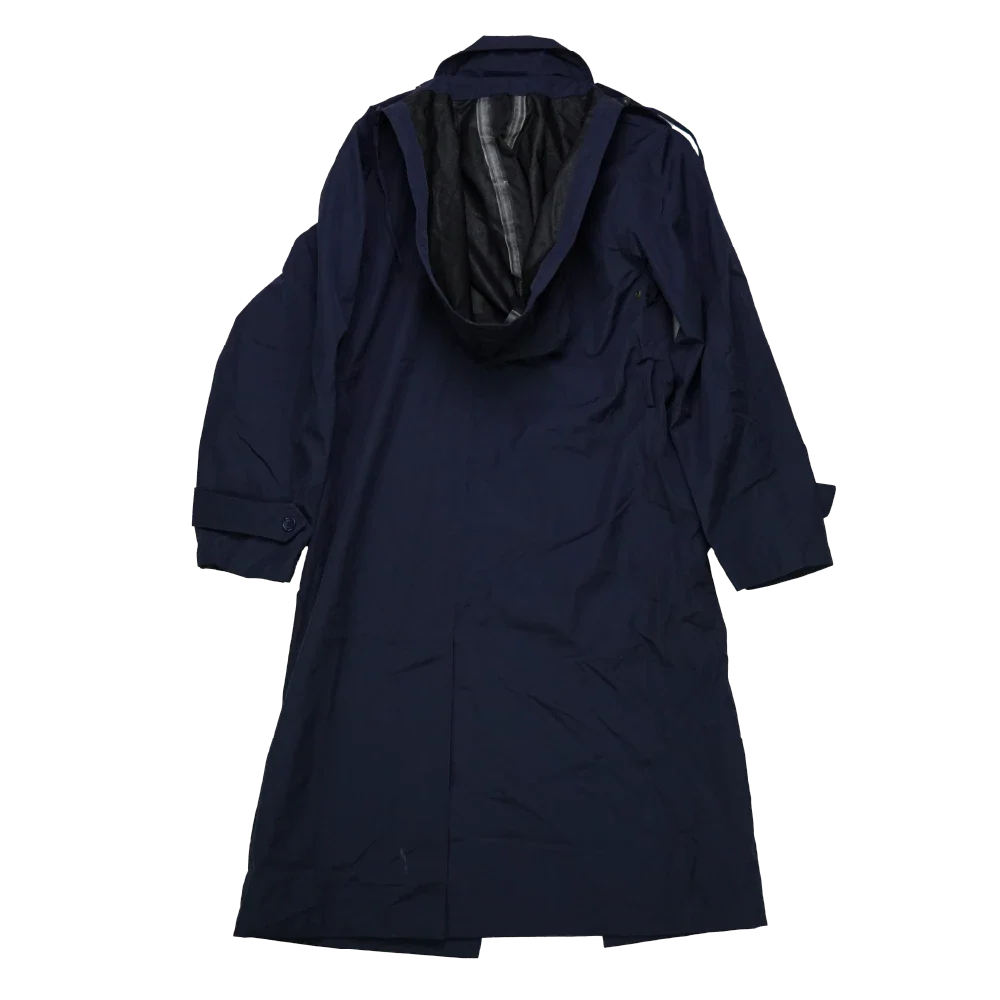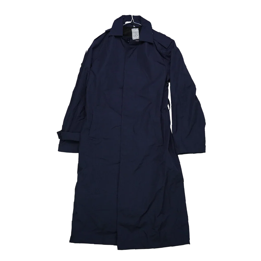 Romanian Navy waterproof trenchcoat in XSmall / Regular sizing. Long cut with a full front closure and waterproof outer construction.